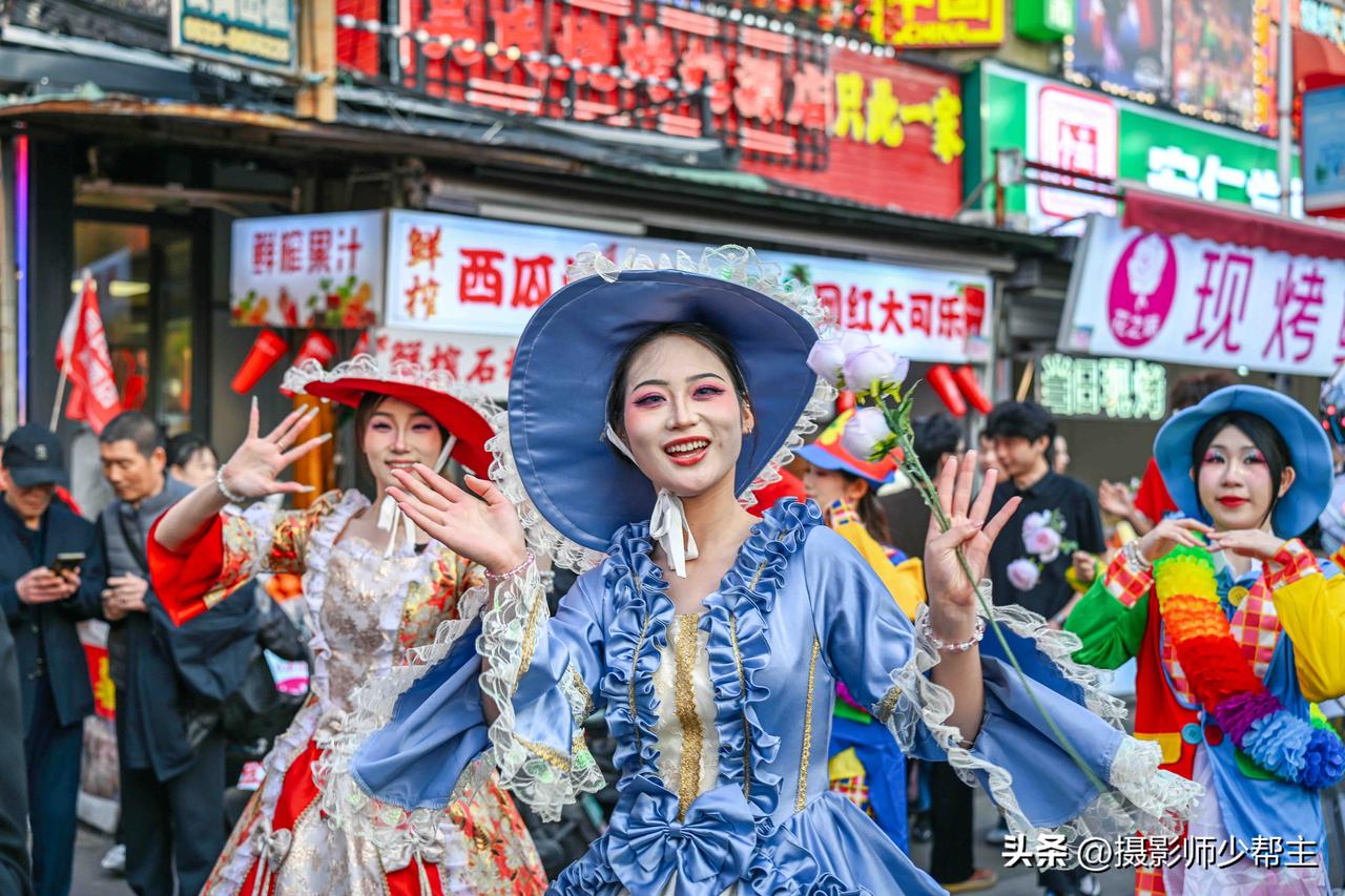 镜头里的宝藏山东淄博也太会整活了!步入八大局便民市场,恰逢街区巡游热闹开场,身着