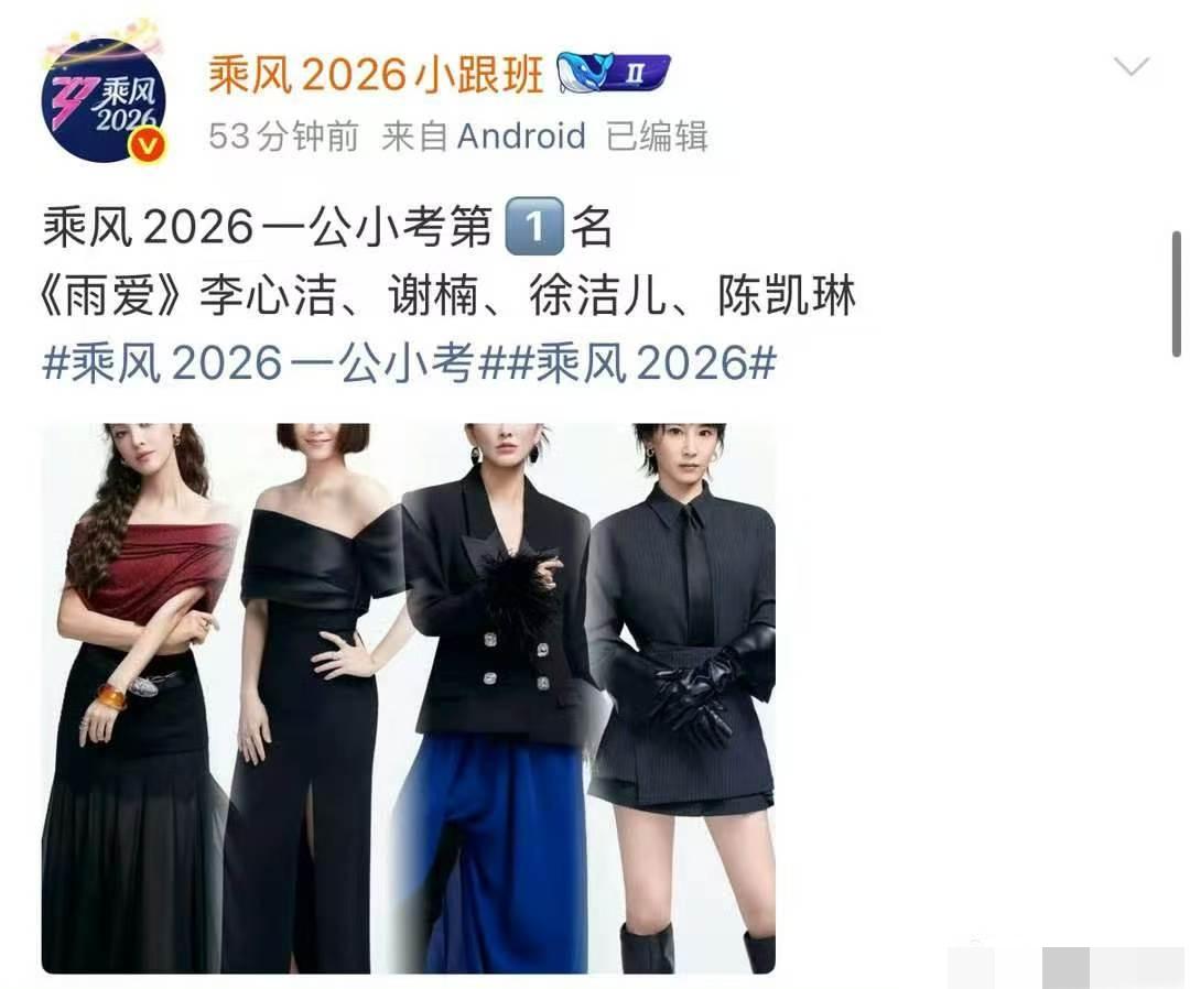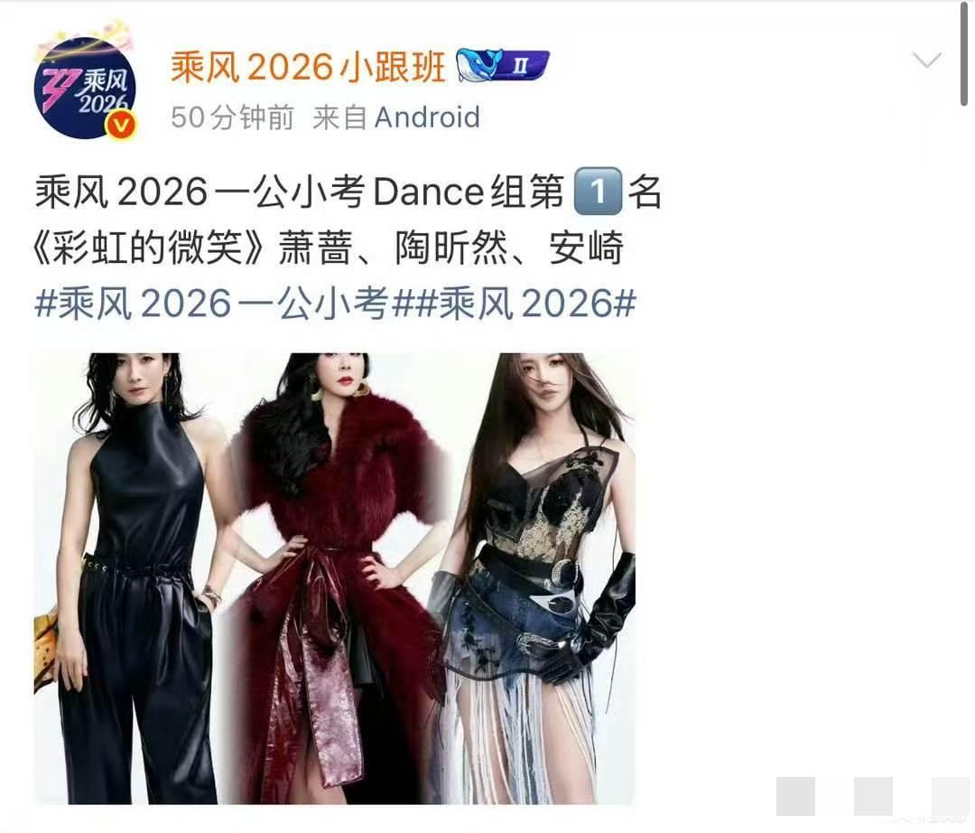 《浪姐7》第一次公演小考成绩: Dance组第一《彩虹的微笑》,萧蔷、陶昕然、安崎。 vocal组第一《雨爱》,李心洁、谢楠、徐洁儿、陈凯琳。 大热门张月组、曾沛慈组没有取得好成绩,倒数第一是阚清子、温峥嵘、张艺上表演的《咏春》。 阚清子组垫底在情理之中,三个姐姐都是专业演员,偏偏选了一首难度不低的《咏春》,又唱又跳真的为难她们了。 第一次公演正赛10-11号直播,这次小考分数不计入在内。公演主要看现场观众投票,姐姐们还有机会翻盘。