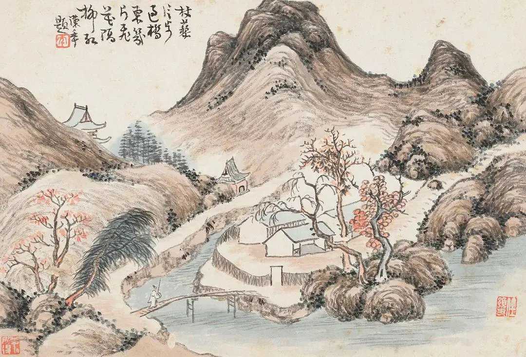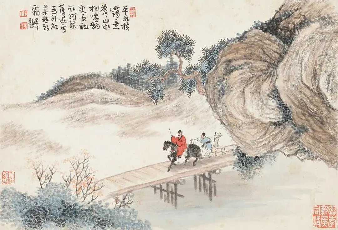 任预诗意册,设色清丽,古朴雅致。任预(1853年—1901年),一名豫,字立凡,浙江萧山人,晚清著名海派画家,为早期海派大师任熊之子,山水、人物、花鸟,无所不精。在“四任”(任熊、任薰、任颐、任预)中,最为年轻。任熊逝世时,任预仅四岁,因此在画风上没有机会受到父亲的直接影响。笔墨初无师承,尽变任氏宗派,其画纯以天分秀出尘表。其人物画师承陈洪绶;山水中加人物、树石,位置衣貌,配合尤能出新;花卉能为宋人钩勒,根叶奇崛;画女子则秀媚天然,不事绚染,惟互面淡妆而已,尤善传神之作。这就是中国风遇见艺术