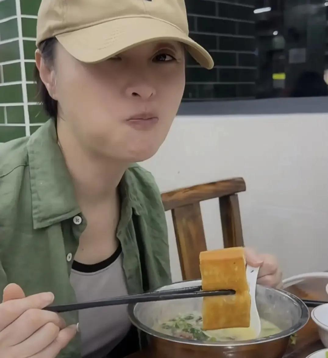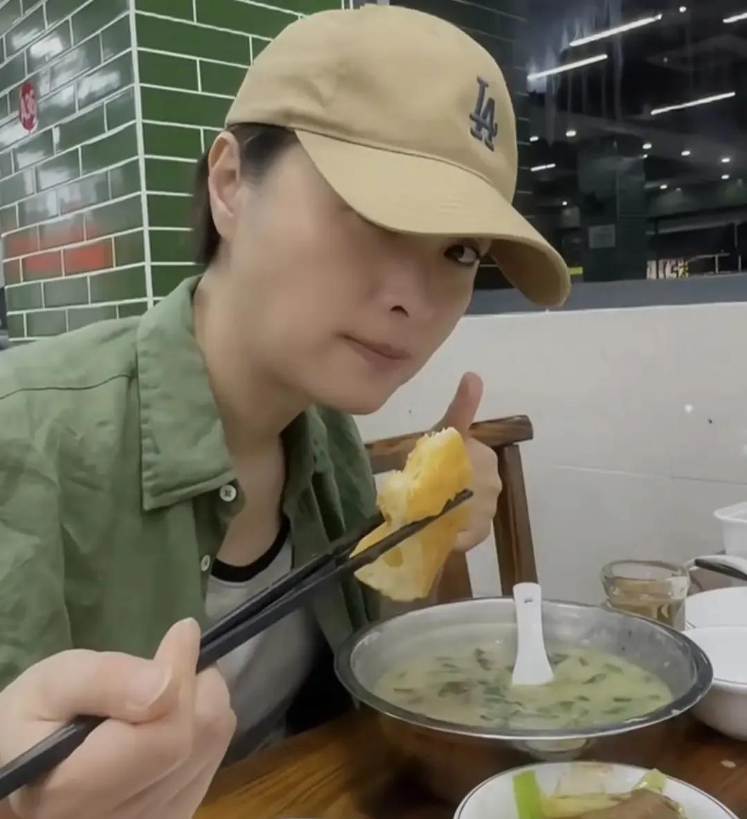 最近有网友在佛山一家普通的小饭馆偶遇了吴越。照片里,她端着一个不锈钢小盆喝粥,顺手掰了根油条泡进去,素颜坐在那儿,吃得特别自在。
