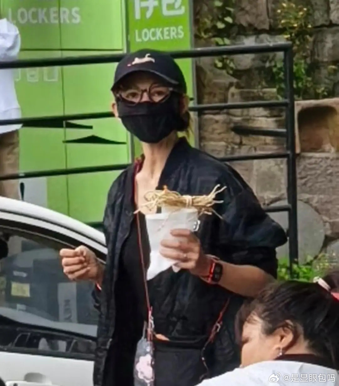 蔡少芬和老公张晋在重庆旅游被偶遇,她现实中真人打扮时尚又大方,就是身材比较瘦,在饮品店买了一杯折耳根茶水!