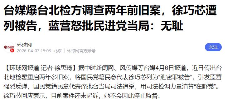 可就在郑丽文前脚刚离开台湾,赖清德当局后脚就迫不及待地重启调查,还火速将徐巧芯列为被告,这时间点卡得简直精准到了分钟级。国民党"立委"罗智强在脸书上怒批:"赖清德的清算之刃已指向徐巧芯!"