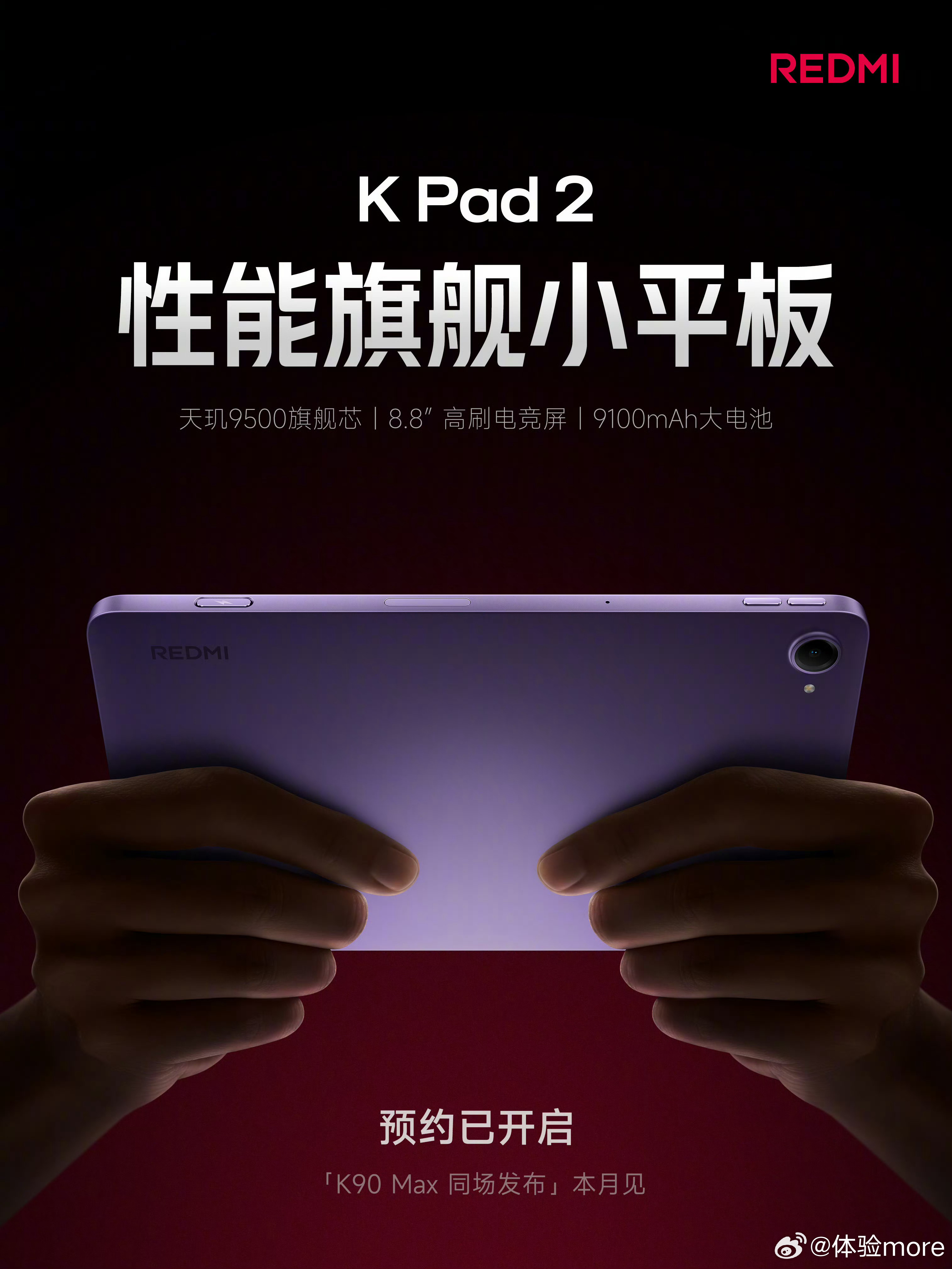 REDMI K Pad 2旗舰小平板也来了,天玑9500,67W+9100mAh
