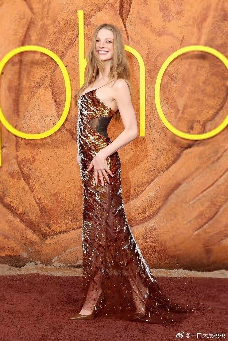 Hunter Schafer亮相《亢奋》第三季首映红毯首映礼,身穿Roberto Cavalli 2026春夏金色礼服,毯神回归!