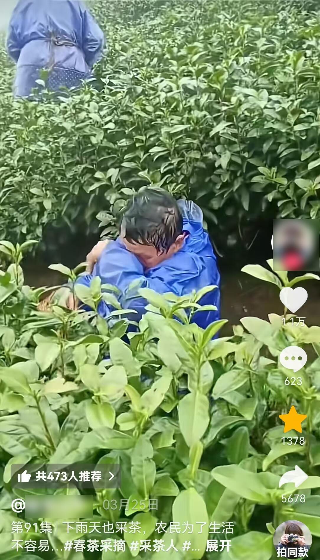 更难受的是,下着雨还得穿雨衣采茶,雨水打得眼睛都睁不开。这些画面一出来,网上马上就炸了。