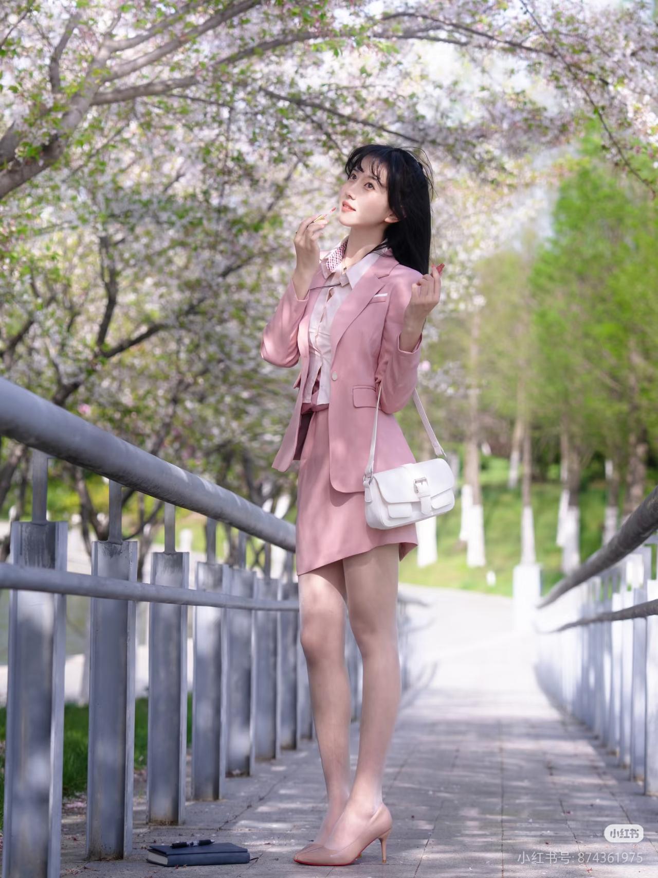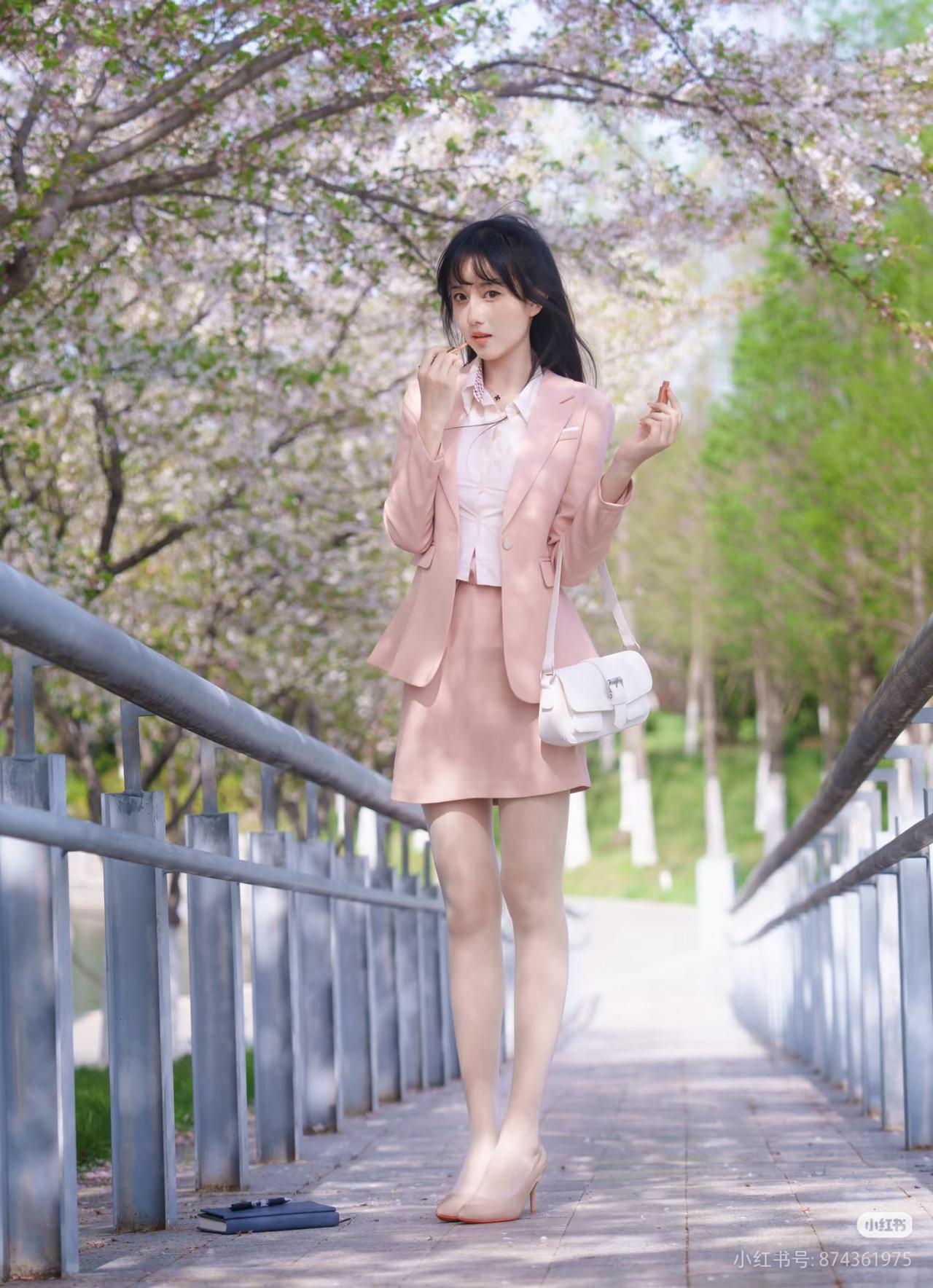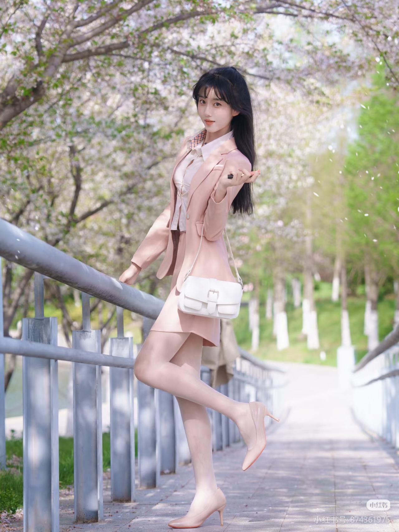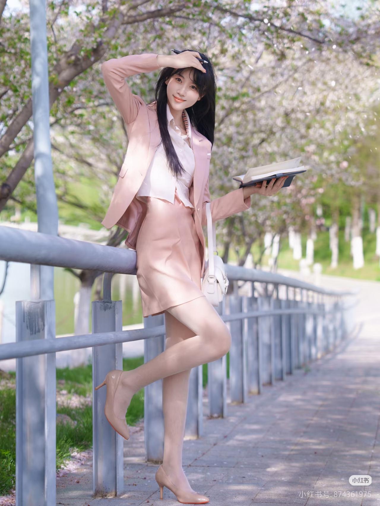 樱花树下,优雅少女,手机与书相伴,春日漫步