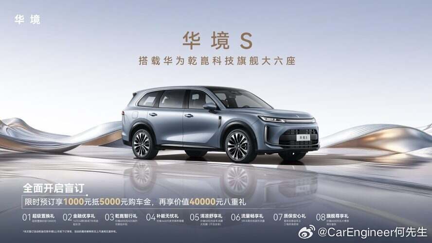 我不想把华境的配置表再念一遍,总之都是市面一流的供应商,从华为到宁德到博世福耀等等,都挺强的。华为乾崑大六座华境s开启预订