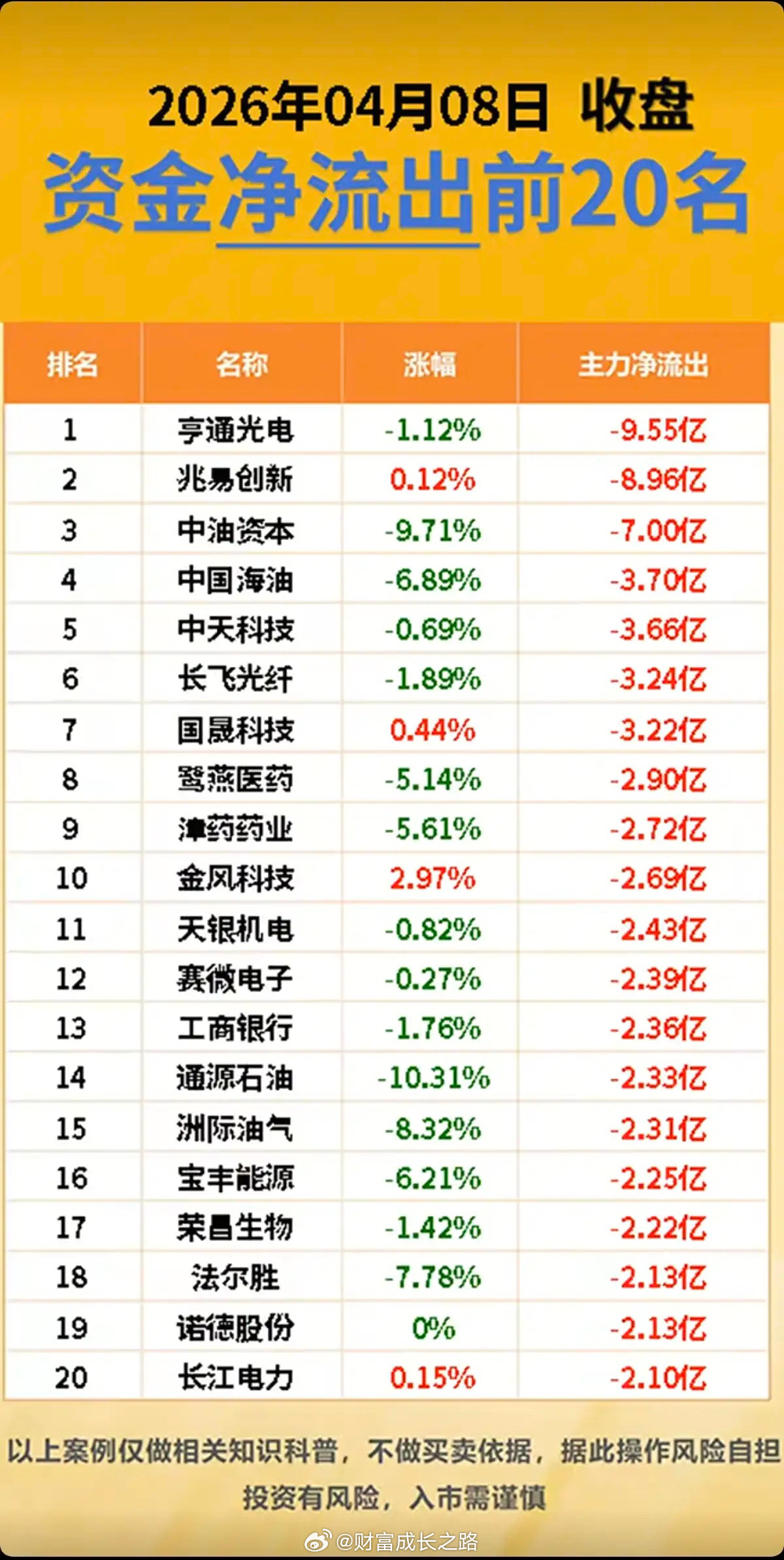 4.8周三 主力大资金 资金流向监测!