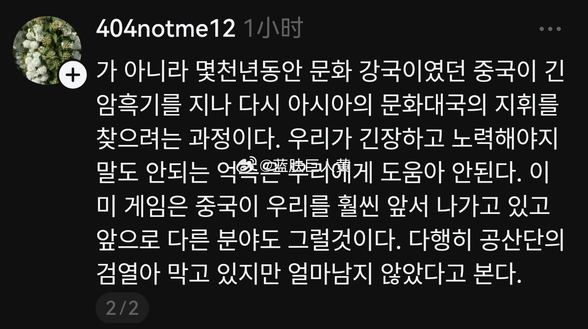 韩国人最近非常焦虑,有韩国网友承认,“中国作为亚洲文化大国的领导地位正在回来,韩