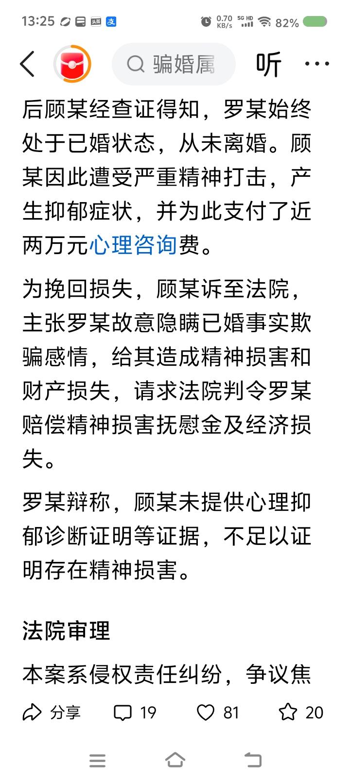 据报道,一男子向女子表白,对方知道他已婚,拒绝。后来男子谎称离婚,再次追求该女子。女子同意了,后发现男子未离婚,大受打击,抑郁了。治疗已花费几万。起诉。