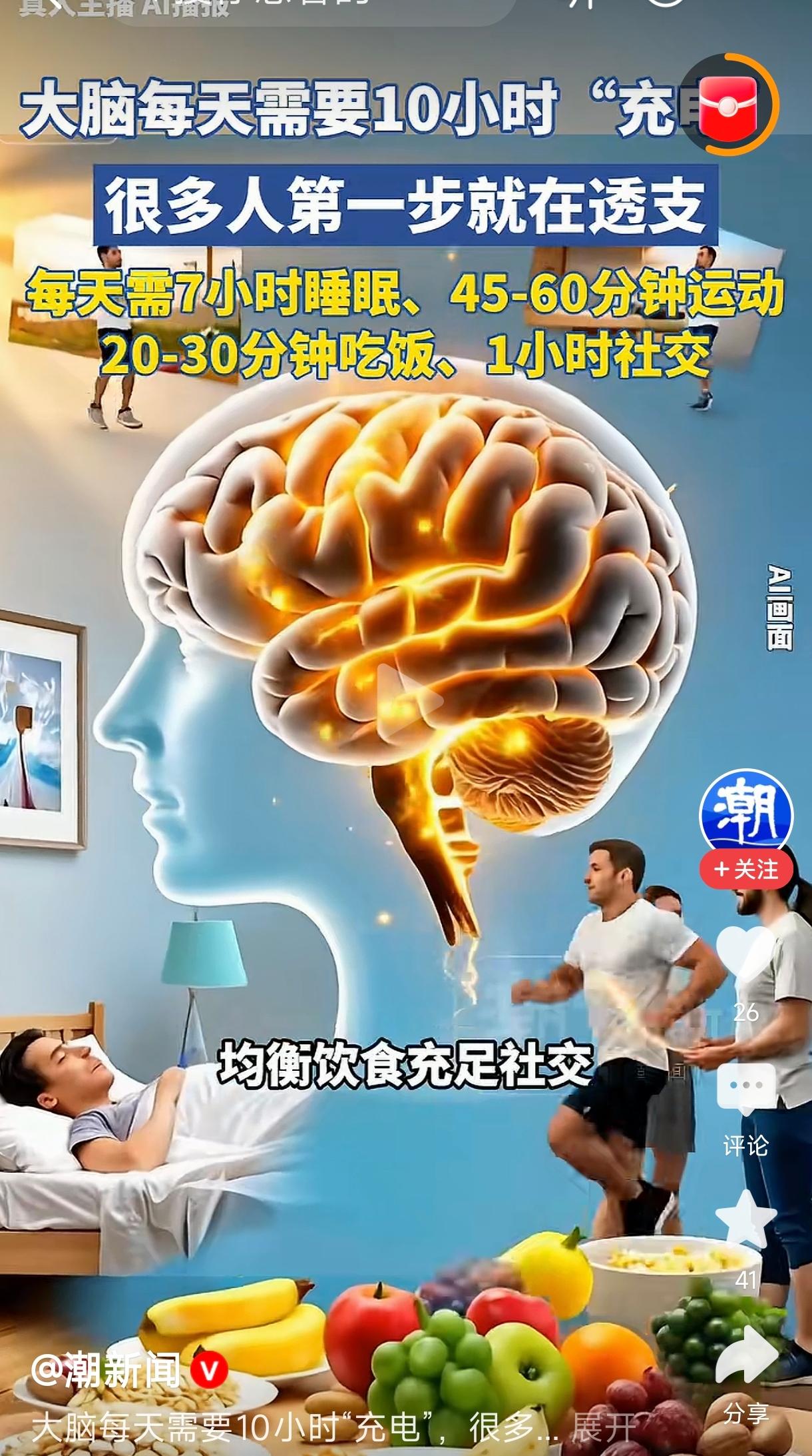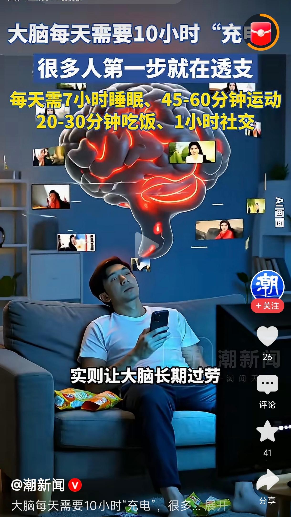 你提到“大脑每天需要10小时‘充电’,很多人第一步就在透支,每天需7小时睡眠、45-60分钟……”