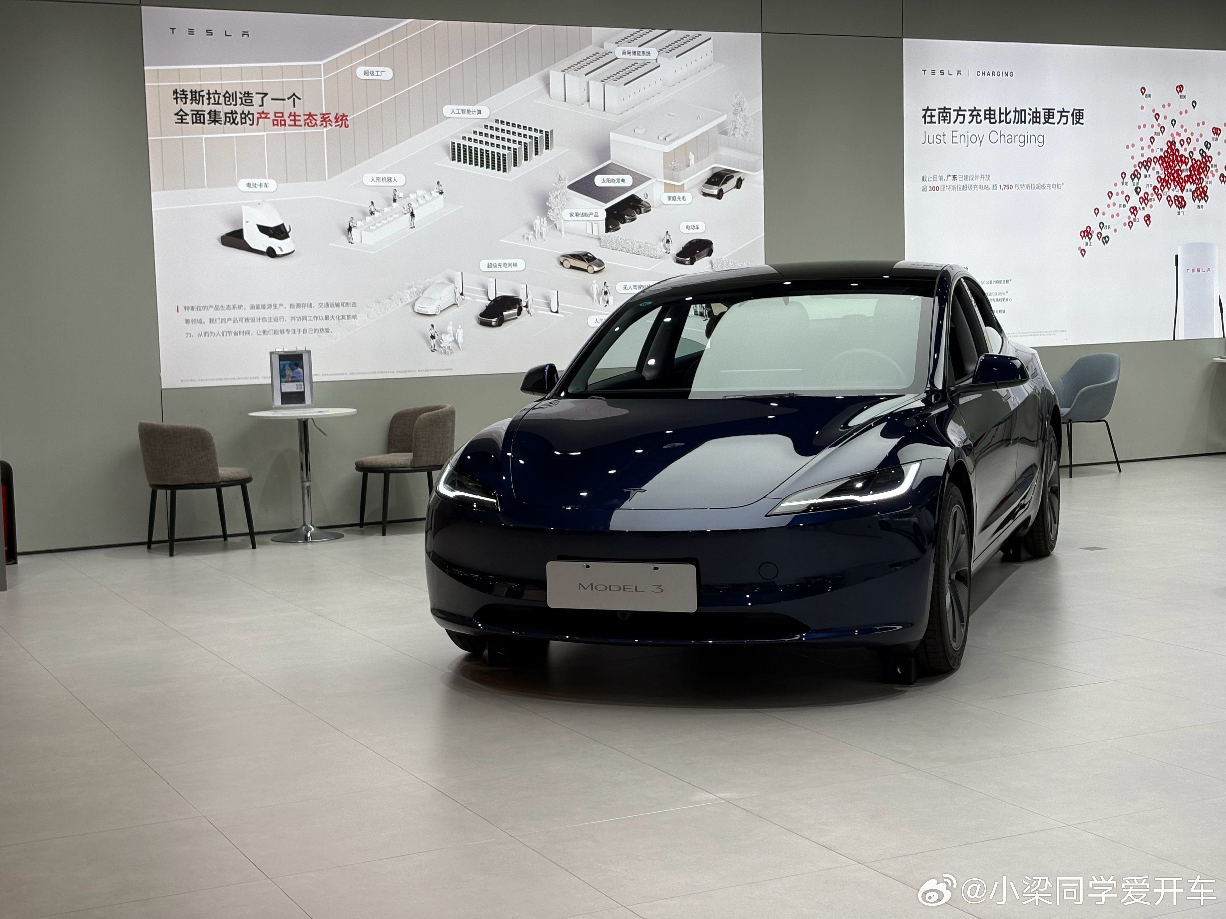 特斯拉新出的这个海洋蓝还是挺有质感的不过,周一到五饭店时间特斯拉居然没有人看车反