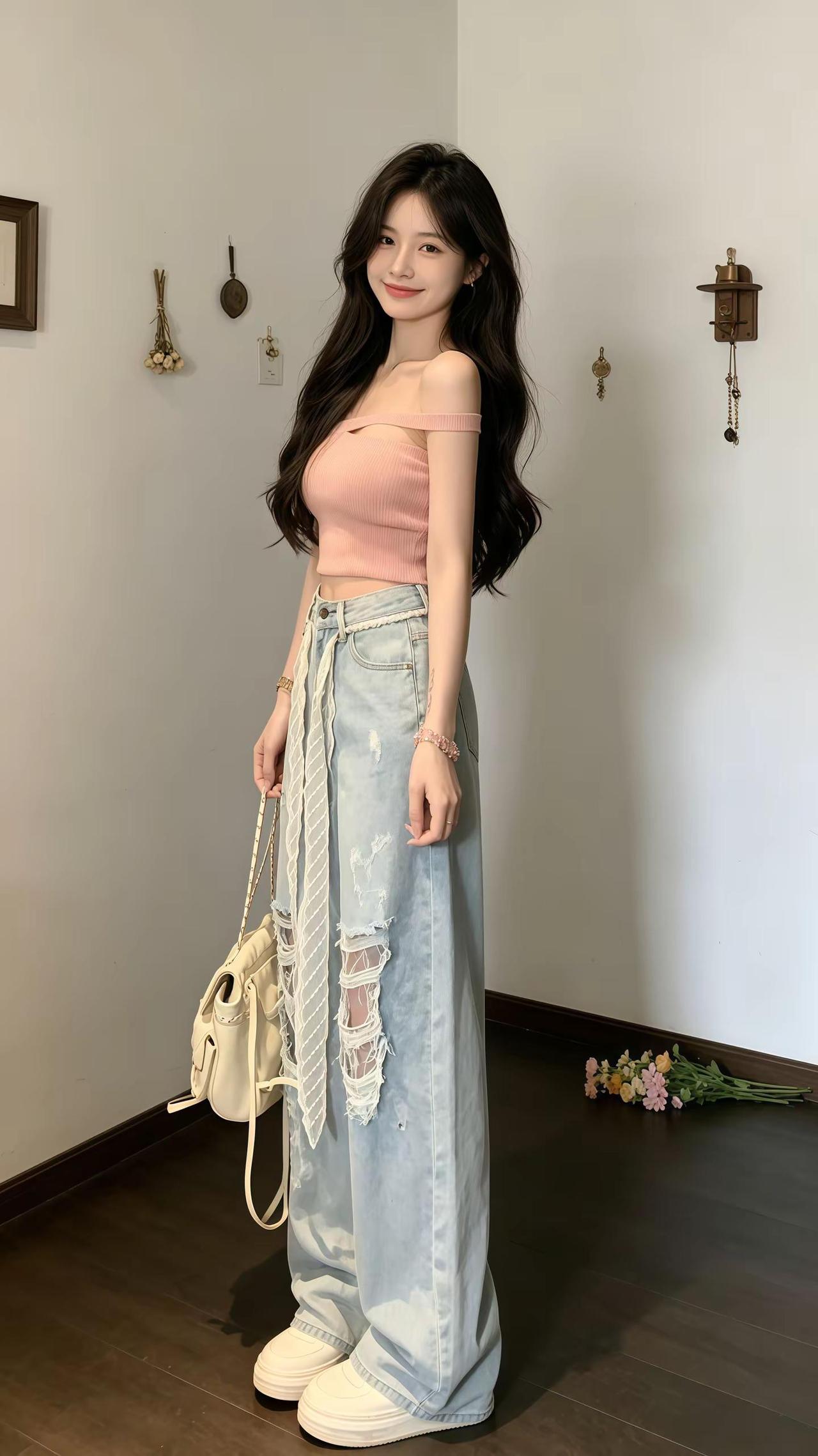 破洞阔腿裤穿搭 女生穿搭 时尚穿搭 穿搭日记