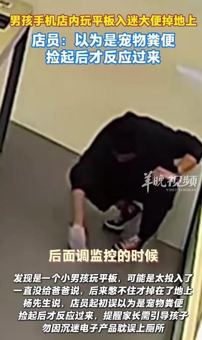 2025年11月重庆,一男孩在手机店内玩平板太入迷,大便不慎掉落在了地上,工作人员发现后,误以为是宠物粪便,就戴手套将粪便捡起,事后查看监控才发现大便是从小男孩裤腿掉落,网友:这是有多大瘾啊?