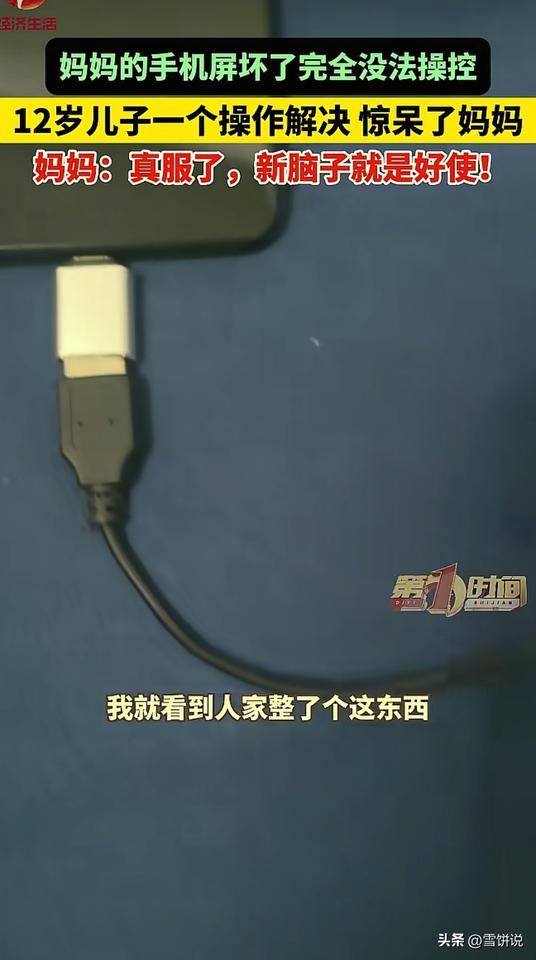 他没有拿螺丝刀,也没拆机,而是翻出一个充电转接头,一头插上手机,一头连了个鼠标。连好之后,淡定地说:妈,你试试