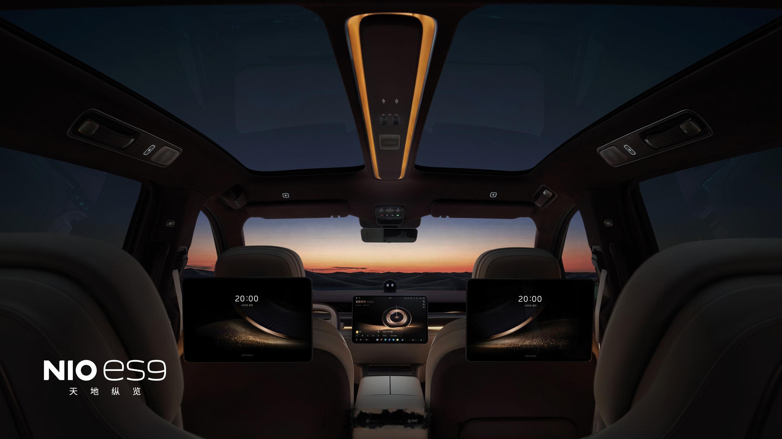 神玑NX9031芯片液晶仪表+大尺寸中控屏顶棚有ET9同款“天空岛”两个二排的背靠娱乐屏二排行政中岛有液晶操控屏