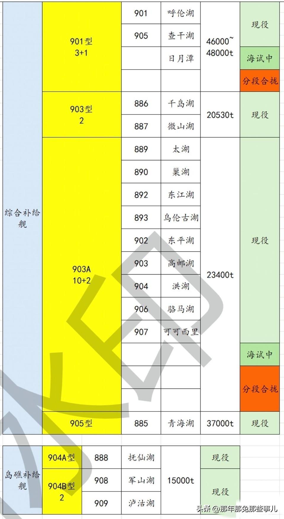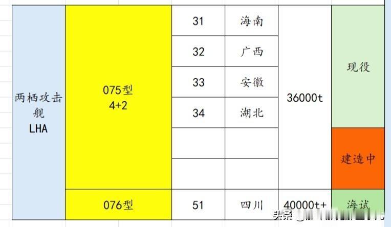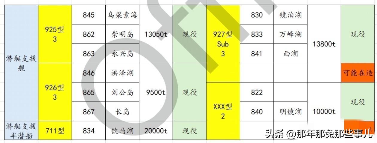 微红表示舰体主体进口/自造混合,其他全黄表示几乎为自研自造。