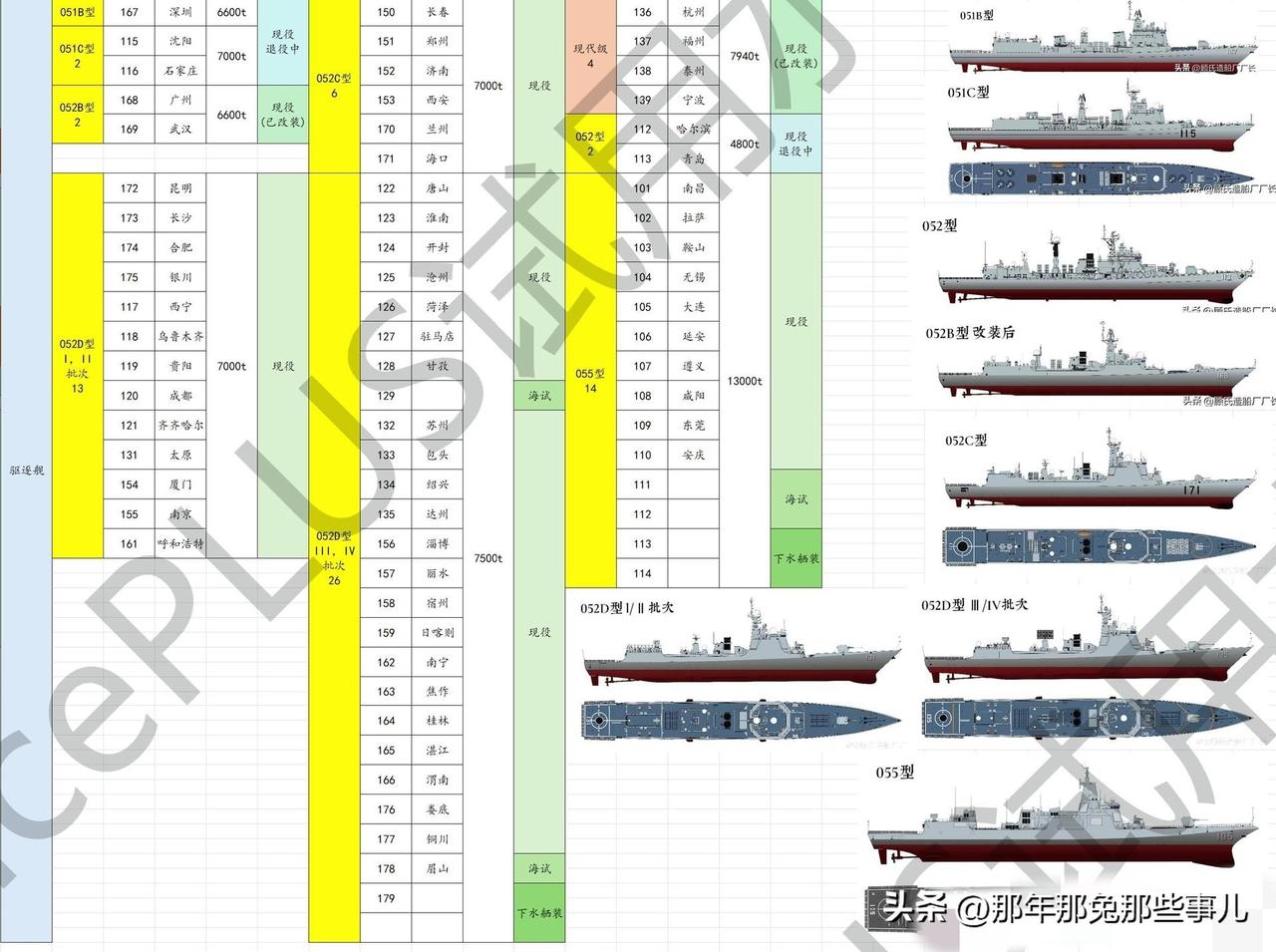 PLAN的舰艇一览,插图见水印,信息截止2026.4.1,源自多方公开消息交叉印证,都是公布信息,可查。