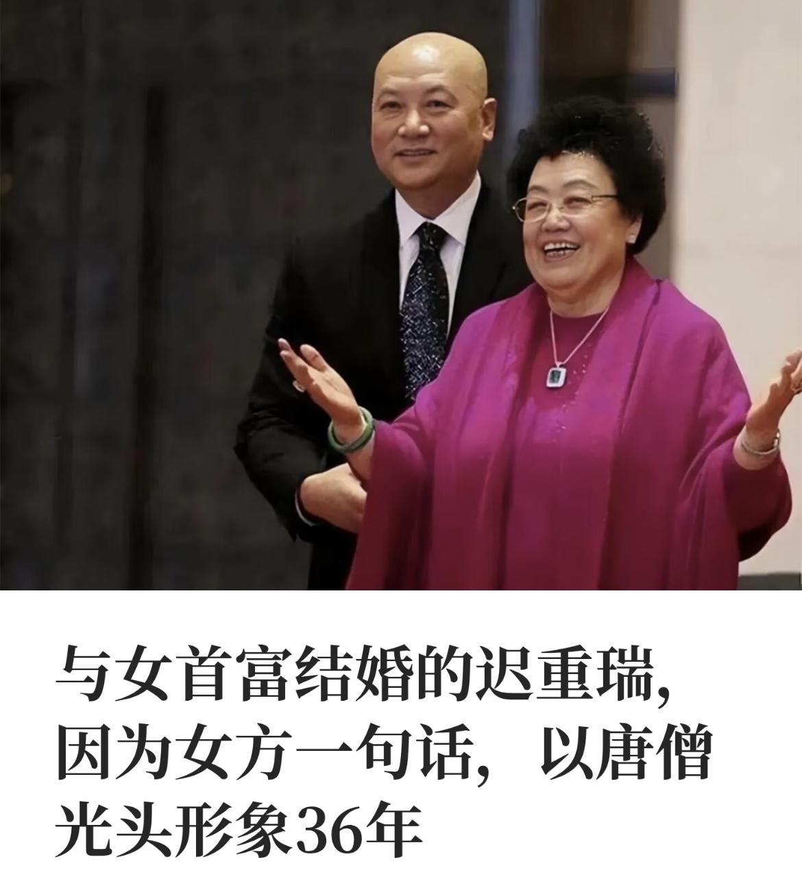 看了“唐僧”迟重瑞前些年的行为, 严重怀疑是不是被陈丽华一家精神控制了?继子赵勇仅凭一句话:您现在的光头挺富态,别再留头发了,就保持现状吧。 本来拍完《西游记》的迟重瑞想留回头发,结果对外解释特别尊重继子的想法,和他关系很好,为此留了长达36年的光头。 我估计根本原因是: 1.你光头,你就不是你了,就是唐僧,满足了妻子的梦幻心理需求!如果长发,就是一普通油腻大叔,不稀罕! 2.长发显得年轻,夫妻年龄差距显得更大了! 很多人认为,“尊重继子”,说得非常冠冕堂皇,其实,就是“怕”,是没有地位没有话语权的表现。 从公开采访视频也看得出,他的继子继女对他没有一点尊重,好像迟重瑞就是家里的一个老佣人的感觉。陈丽华对他更是苛刻,多说半句话都是冒犯的那种,相当于老佛爷和太监大总管的感觉。 一个名人,先从妻子,睡觉要保持特定姿势。后从继子,不留头发。生活状态被别人左右,生活中没了自我,活的如同木偶。 所以说,男人嘛,真不用太有钱。演唐僧那会儿可能没赚多少,但在影视圈混,日子肯定比普通人滋润多了。 要是没爱情,跟大十几岁的富婆过日子,还没自己的孩子,活得那么卑微,钱再多又咋样?这婚结得开不开心,只有他自己心里清楚。