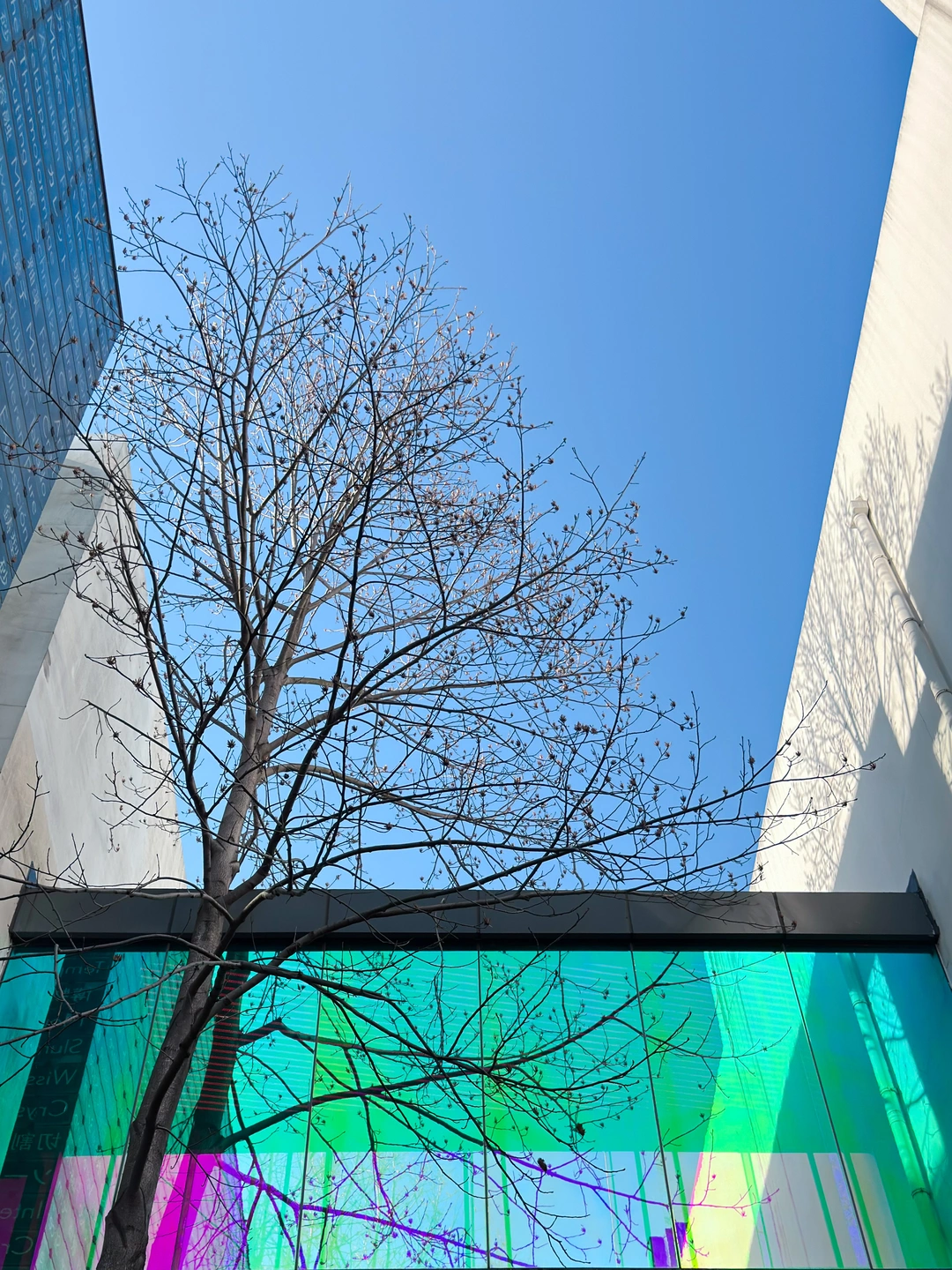 →玻璃幕墙折射七彩光斑,很适合拍照