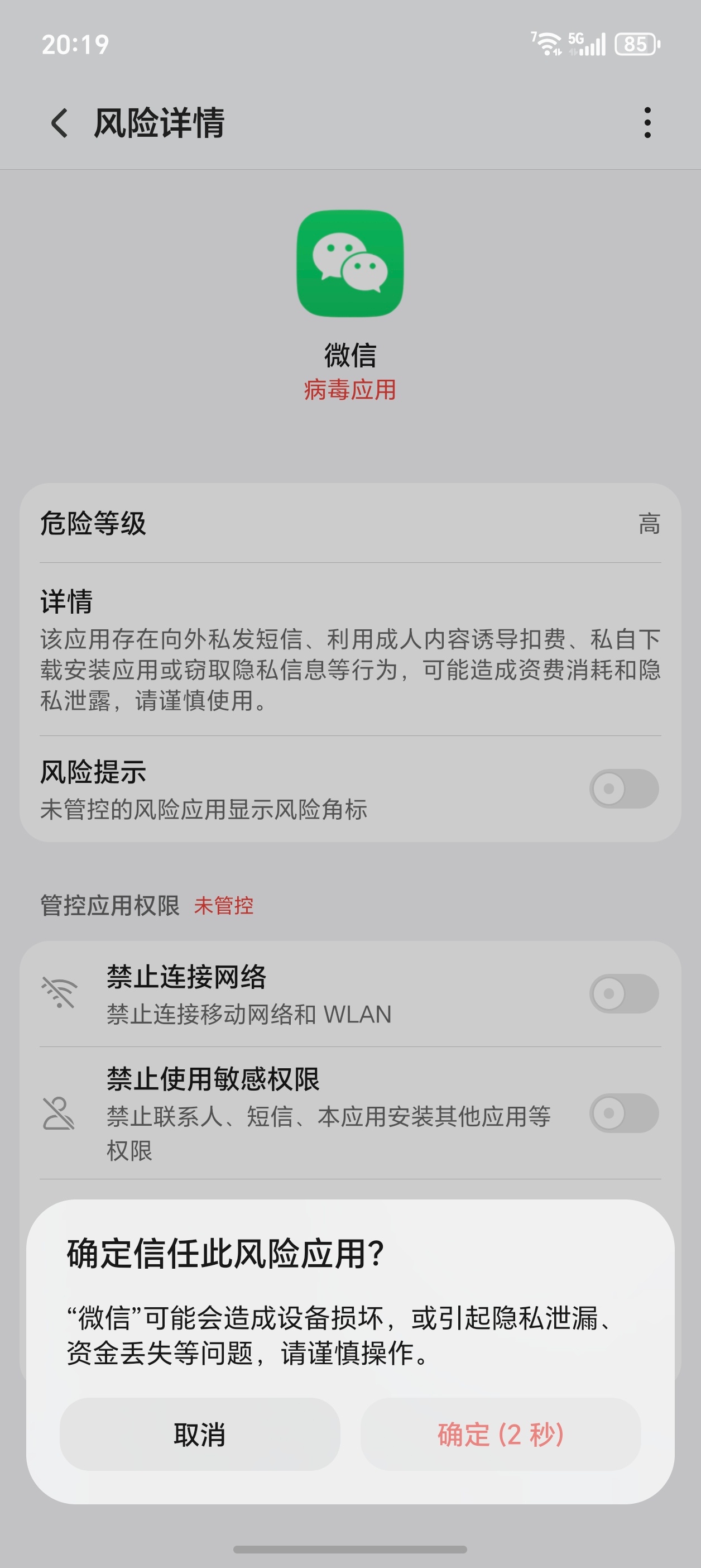 手机管家更新后,终于可以把应用解除管控后添加进白名单了