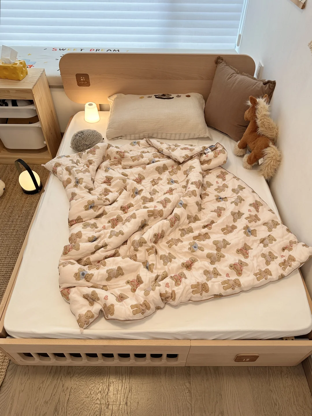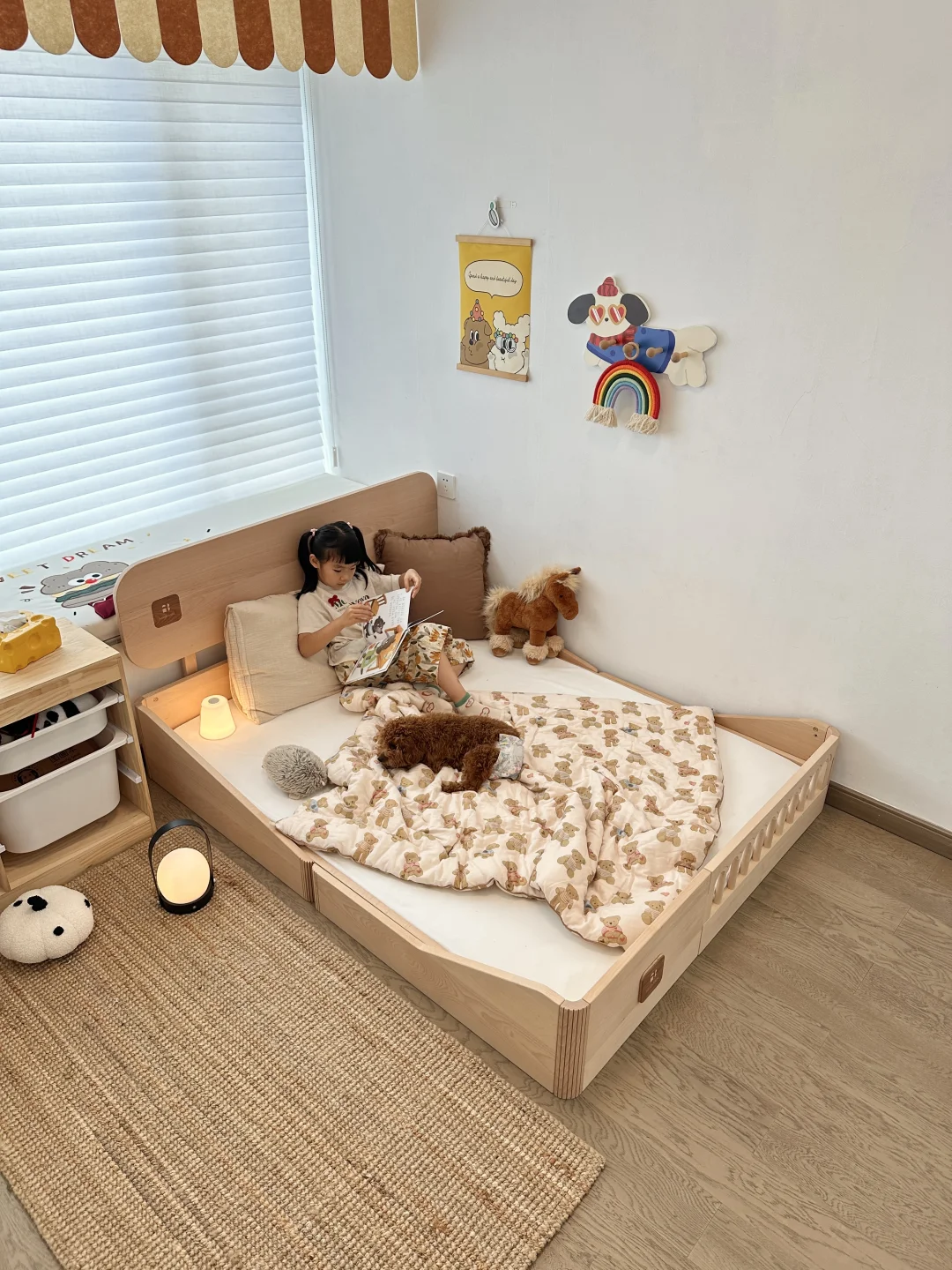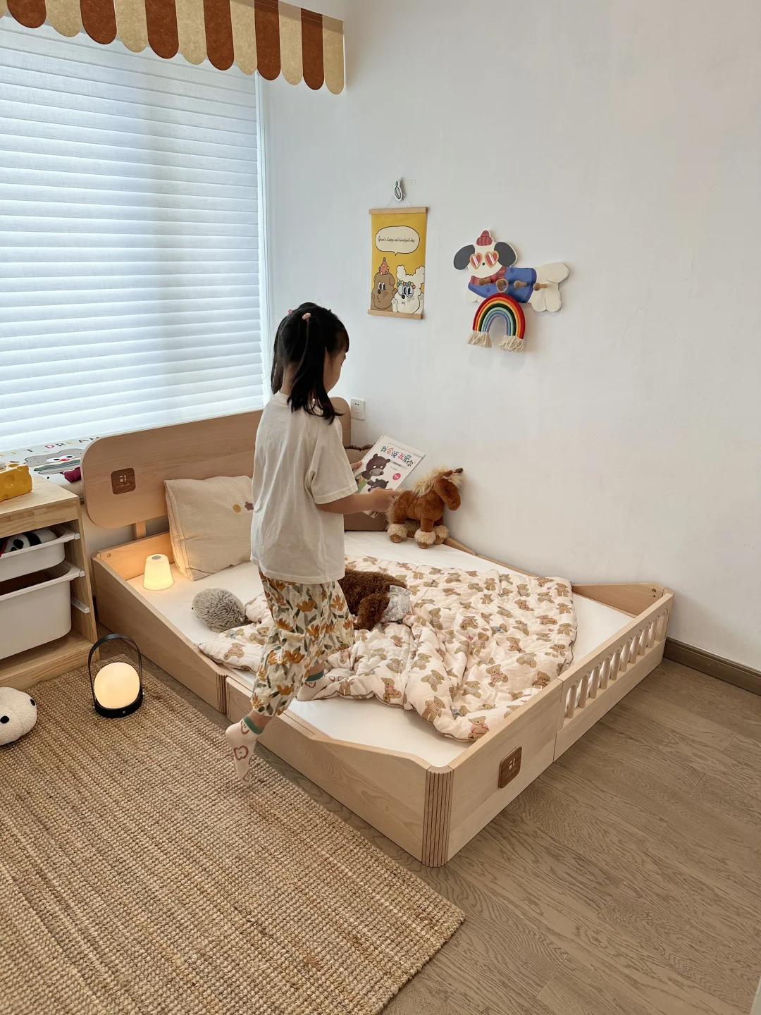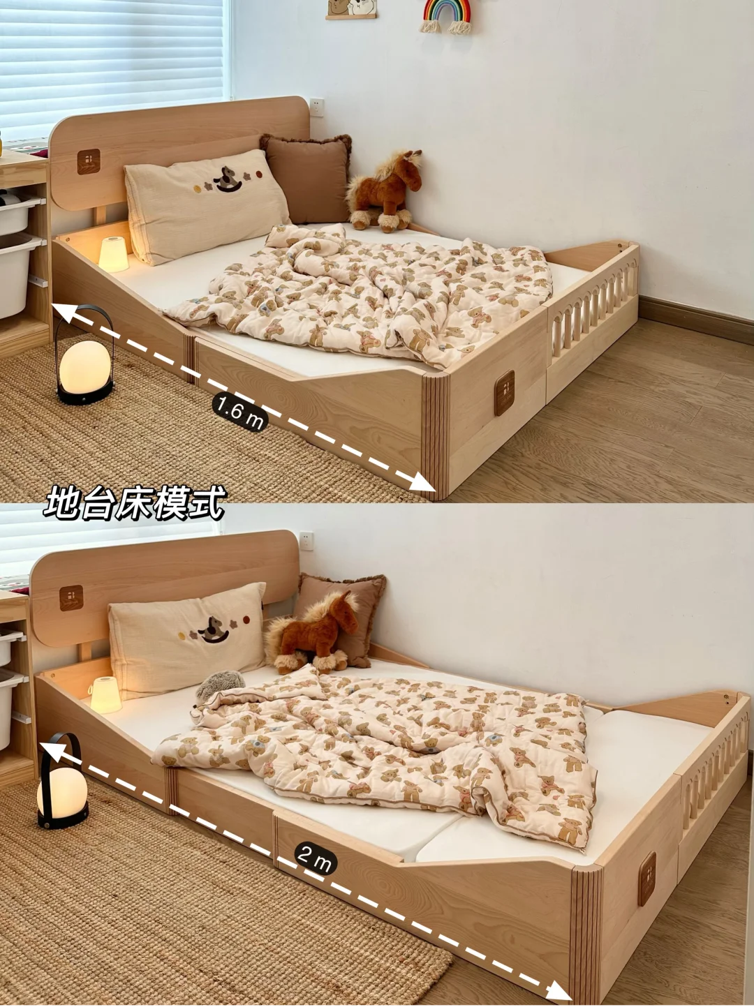 装修儿童房真不用瞎折腾,特别是我家入的这款地台床,它不仅可以地台床模式和儿童床模式切换,还能拉伸成1.6m或者2m,轻松get四种模式~孩子从小睡到成年都没问题,用着是真香啊~