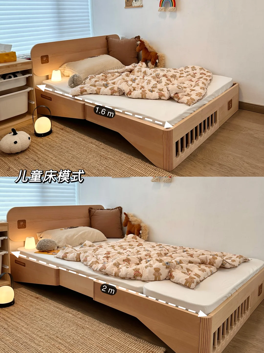 等孩子长大直接从1.6m拉伸到2m,就是标准的大人床了,花一张床的钱,等于买了四张床,不用频繁换床真的巨“省💰”