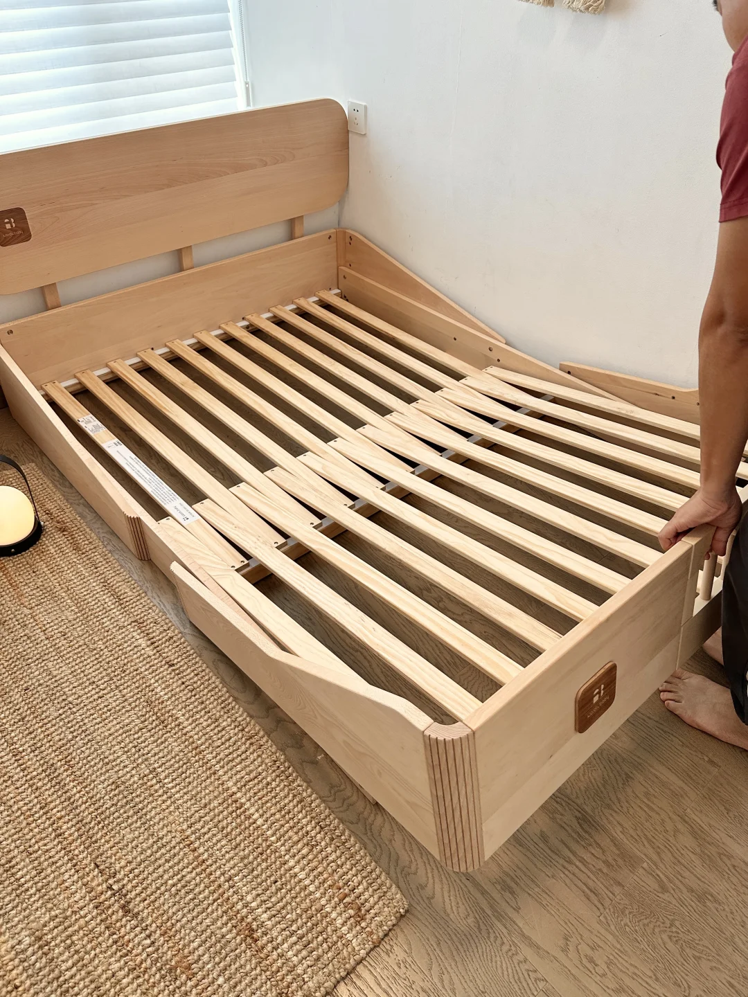 全实木3A级木料,淡淡的木头的香味,给娃用特别安心,边角很圆滑,没有毛刺,孩子蹦跳不怕磕碰到~娃在上面蹦跶也稳稳的,结实耐造,完全不晃不响!