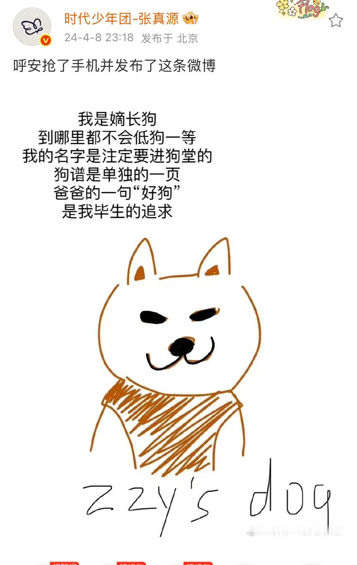 张真源呼安公开三周年发博 呼安和自己的名字一样能睡zzy的小狗有在幸福地长大好有