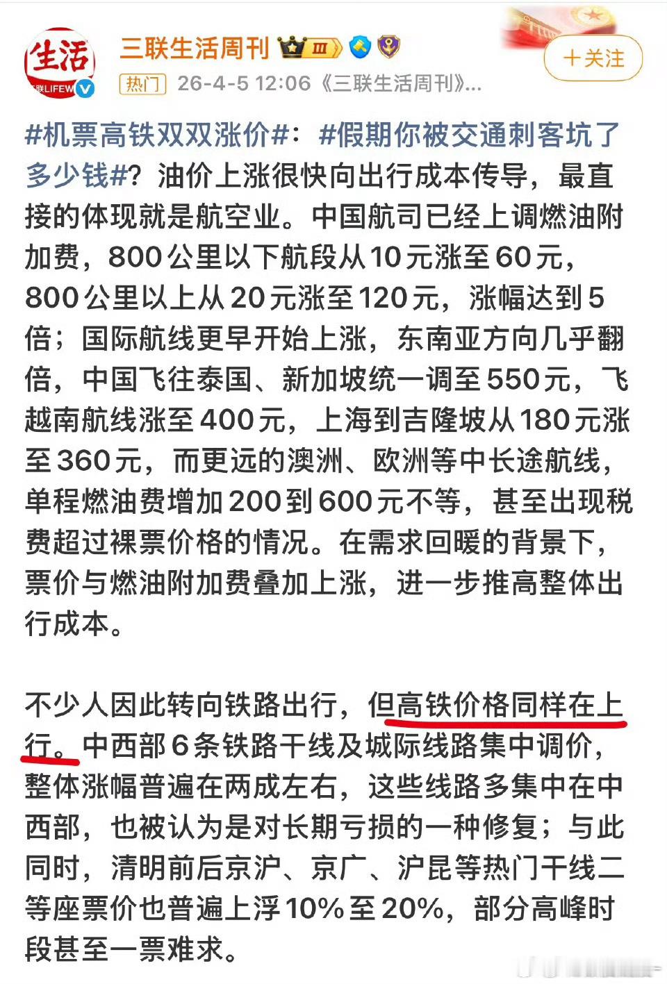 机票涨价 高铁也涨价 现在快递费也要涨