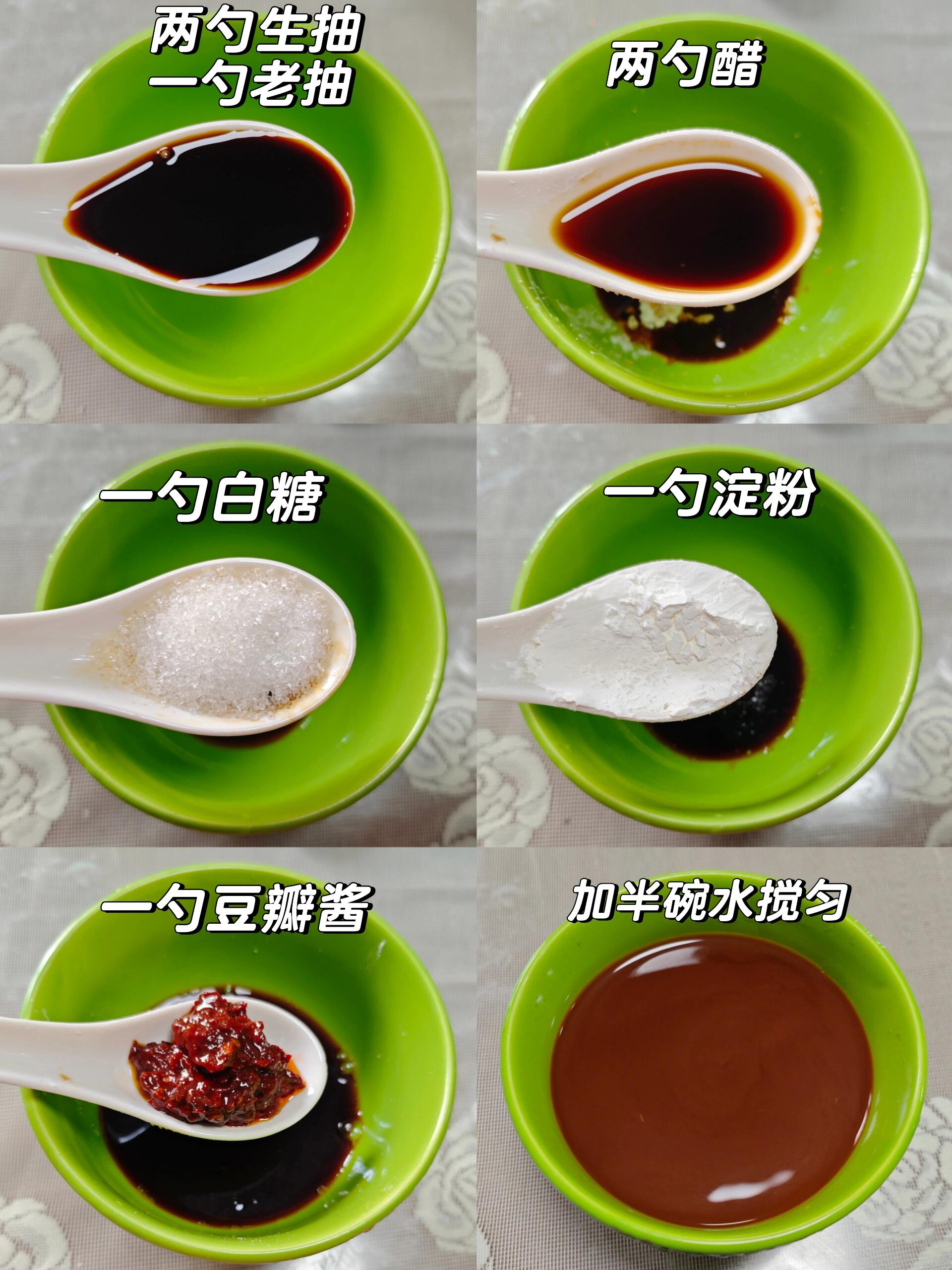2️⃣ 调灵魂鱼香料汁:准备一个小碗,加两勺生抽、一勺老抽、两勺醋、一勺白糖、一勺豆瓣酱、一勺淀粉,再倒入半碗清水,用筷子充分搅匀,静置备用(记住这个配比,鱼香味直接封神!)