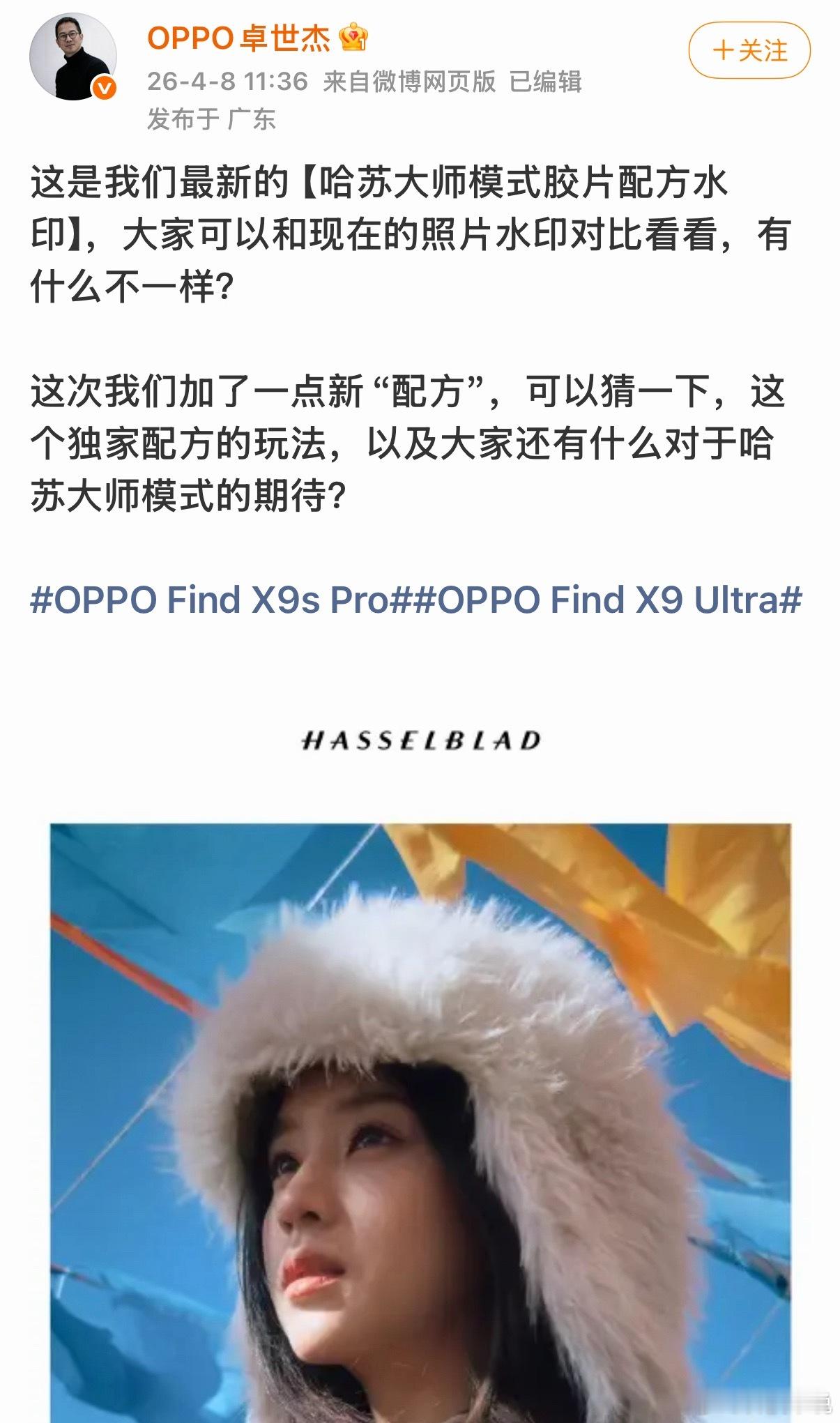 OPPO Find X9s Pro 哈苏大师模式原生胶片,真不是滤镜!底层原生光影直出,人像满是故事感,色彩通透层次足,光影过渡细腻高级,专业相机感直接拿捏。期待4月21日发布会~