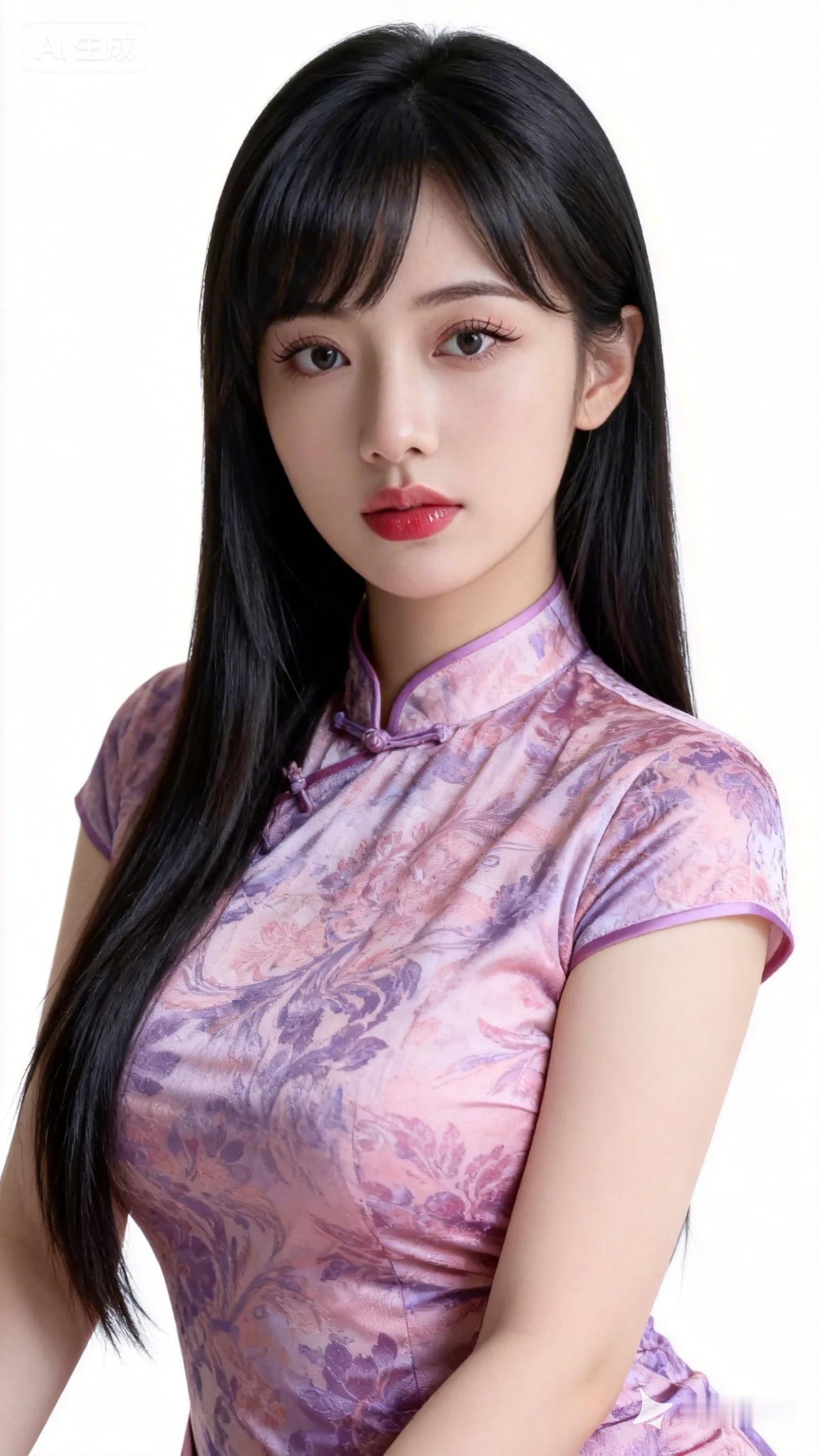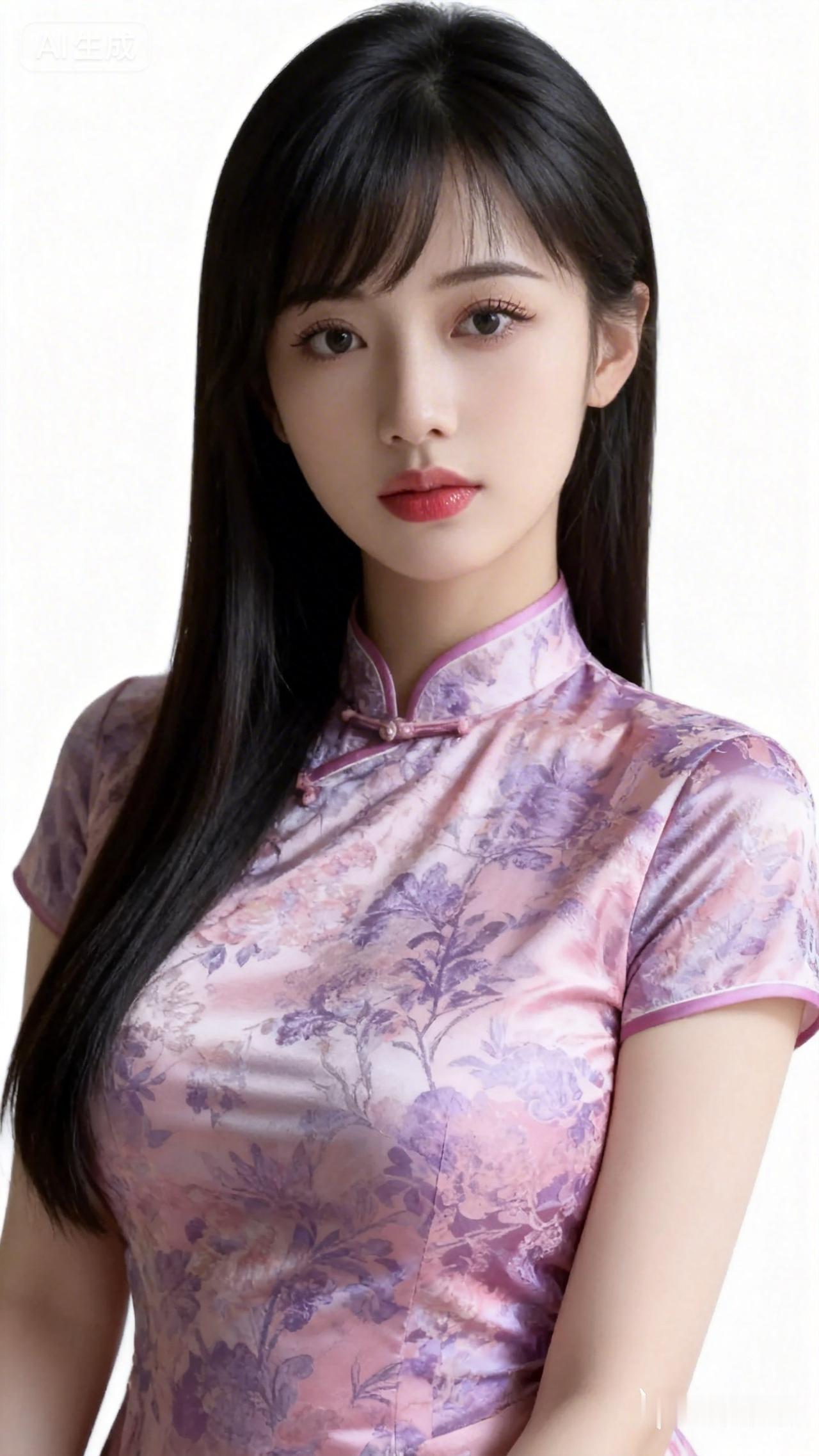 温柔少女风,紫色旗袍搭配精致蝴蝶刺绣,甜美可人!💖✨