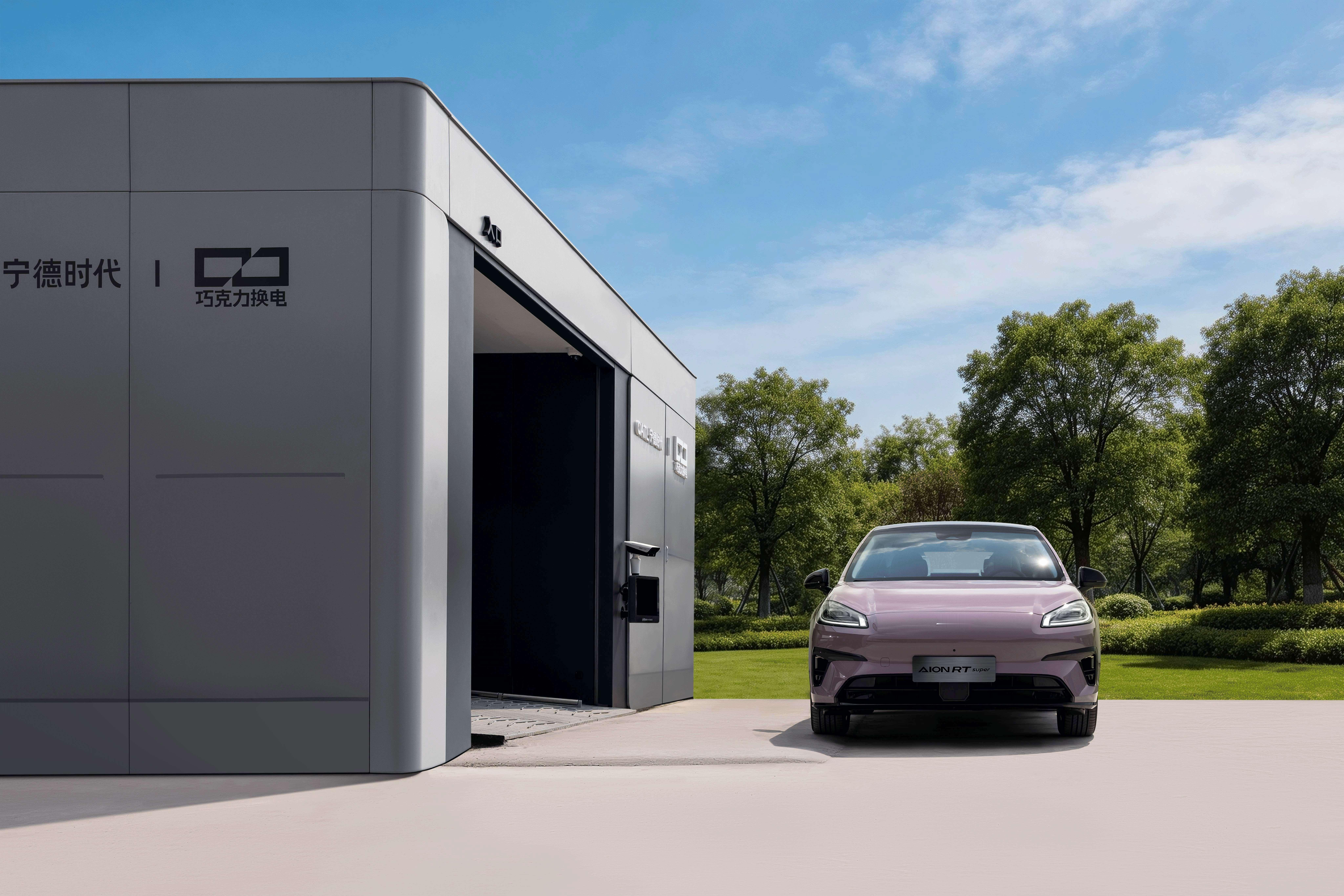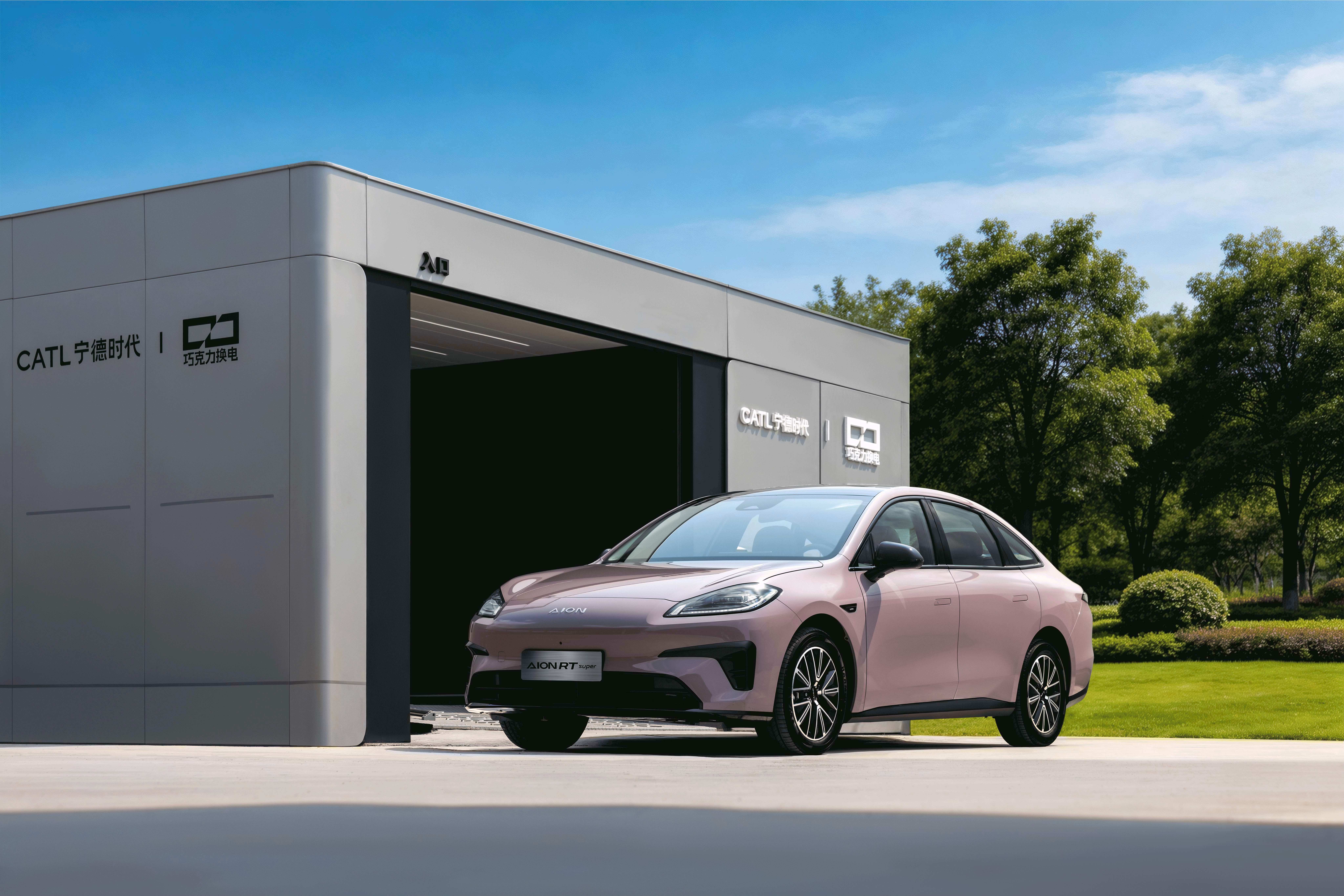 【租电池购车价8.88万,埃安AION RT换电版上市】4月8日,埃安AION RT换电版正式上市,该车命名为RT super,电池租用购车售价为8.88万元。埃安RT定位紧凑型纯电轿车,车身尺寸4865×1875×1520mm,轴距2775mm。外观延续家族式设计,配备LED大灯、LED贯穿尾灯、电动隐藏式门把手,整体线条流畅优雅。车内配备皮质座椅,标配主副驾电动调节/加热/通风,双区恒温热泵空调、超纤皮方向盘、8.88英寸全液晶仪表+14.6英寸中控大屏,内置ADiGO 6.0车机系统。AION RT super的核心配置与智豪版相同,相比于入门版本增加有全景天幕、电动尾门、外后视镜折叠/加热、哨兵模式、无线充电、ACC自适应巡航、前碰预警、自动紧急制动、智能远光灯等。换电版与现款车型核心区别就是电池与补能,它搭载宁德时代巧克力换电电池,容量为54kWh,30%-80%充电时间26分钟,续航505km。电机则采用150kW版本,0-100km/h加速时间为7.5秒。埃安RT换电版
