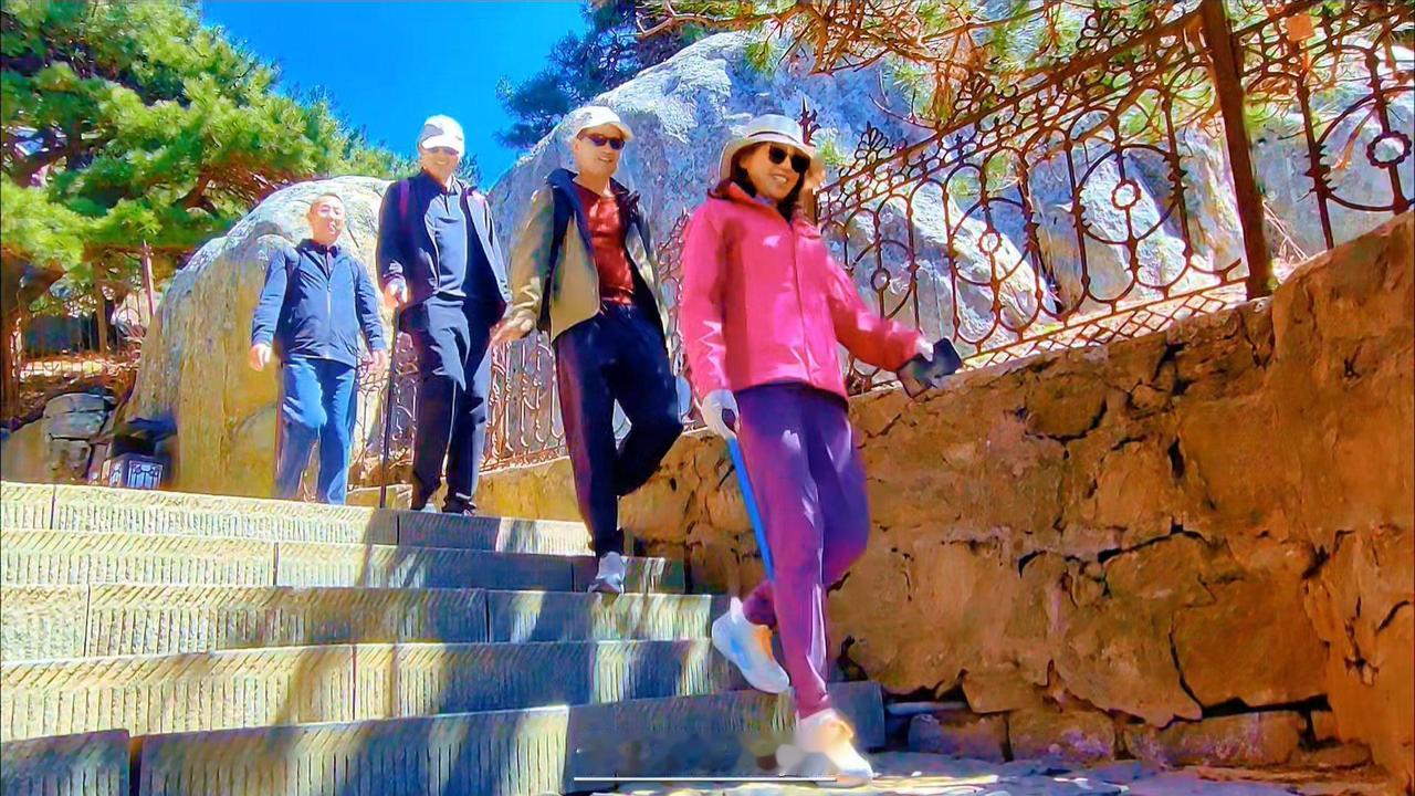 在泰山下山时竟有这般惊喜!选了少人走的石阶,两侧苍松如伞盖,阳光穿过针叶,地面铺满流动光斑,像山水画又似大地明信片。
