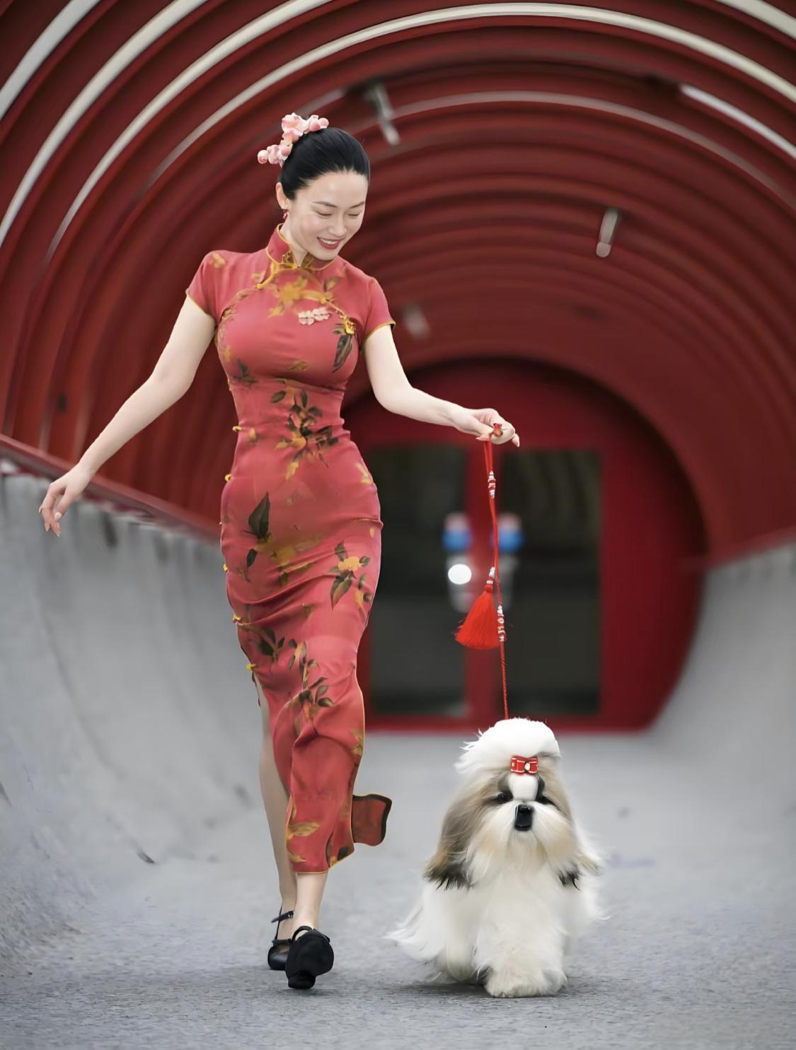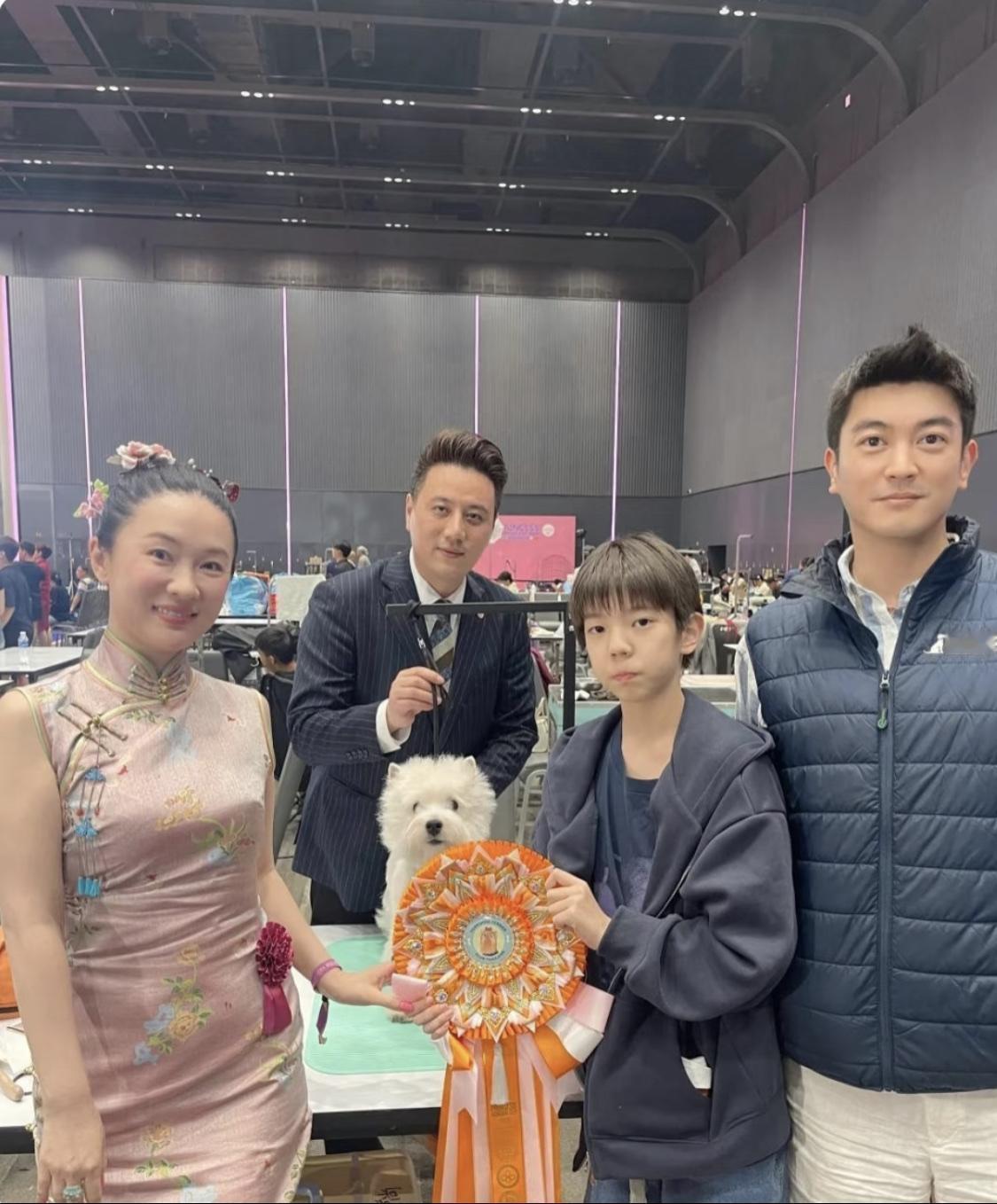 霍思燕沉浸于托举狗狗的世界中。最近,一家三口又现身于泰国公主杯犬展。与冠军狗和狗主人合影。