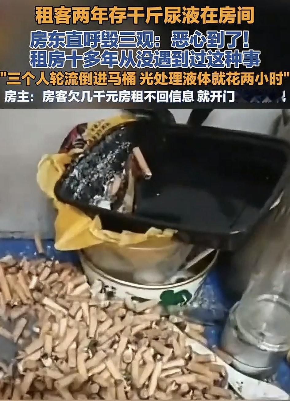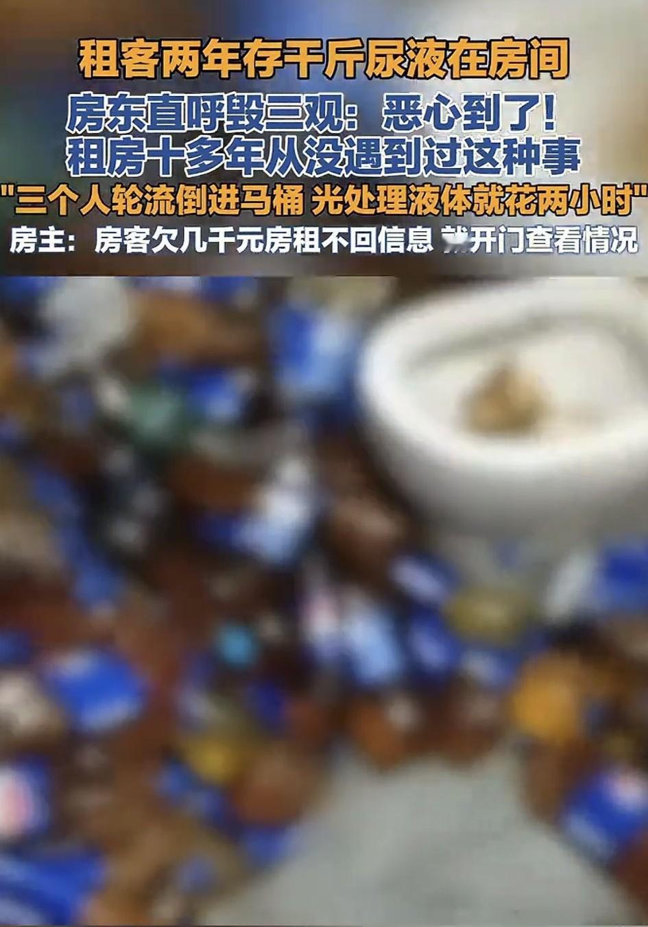 太离谱了!浙江义乌,一房东老板娘发视频吐槽,一名40多岁的男子租她的房子一年左右,但因对方拖欠了5000多元的房租,老板娘与其再三沟通无果后,决定前往男子租住的房间更改门锁密码。不料老板娘开门进屋一瞬间,看到被这位租客男子弄得杂乱不堪,恶臭熏天,且柜子和床底塞满了装有尿液瓶子的屋内场景时,直接让其震惊得一脸懵圈!