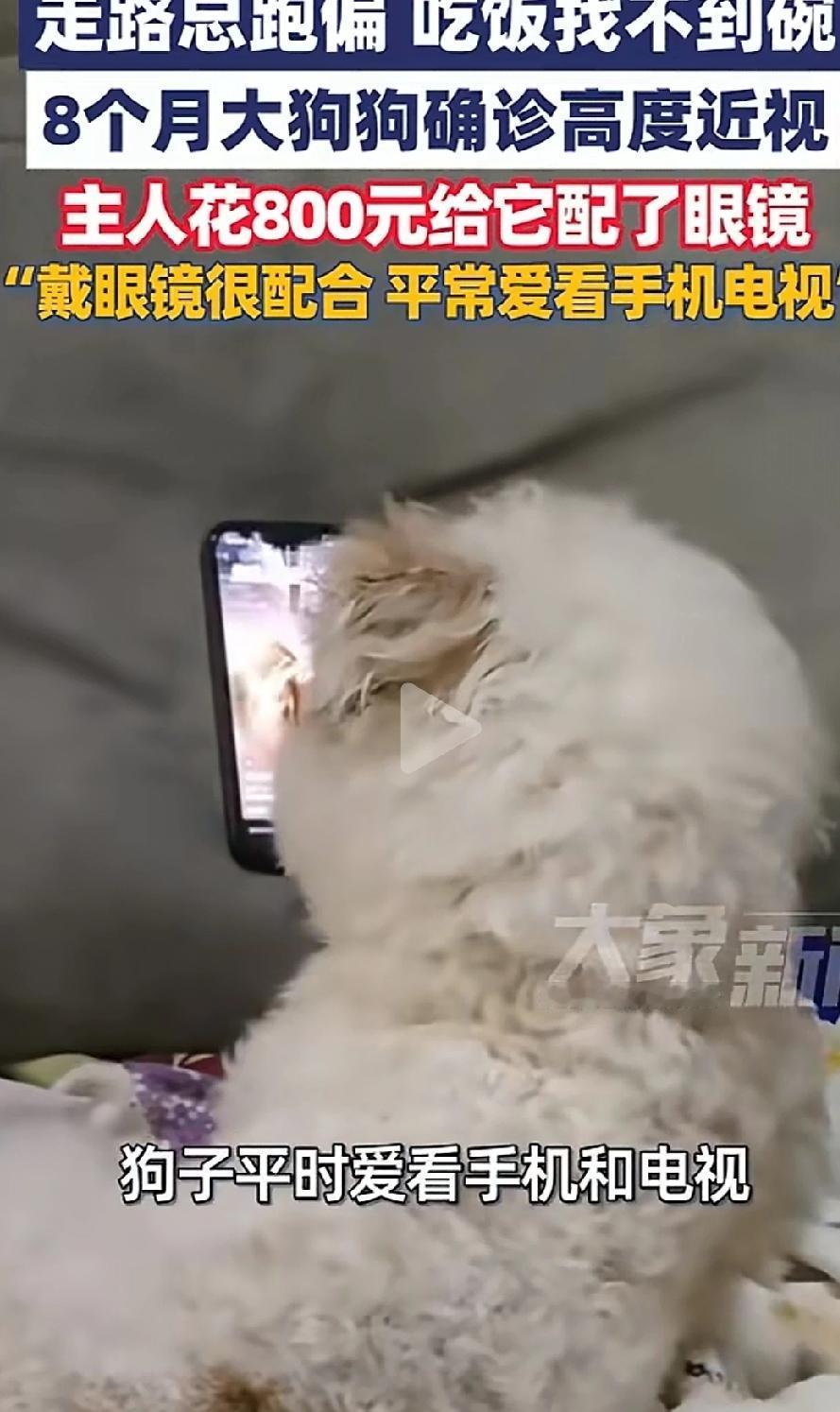 河南,一只才8个月大的小狗,总是撞东西、接不住零食、走路也磕磕绊绊,带去兽医那一查,结果让人哭笑不得——这只狗竟然有“高度近视”!主人专门花800块,给它配了专属小眼镜,而这一切都因为它总爱跟着主人看手机、看电视。