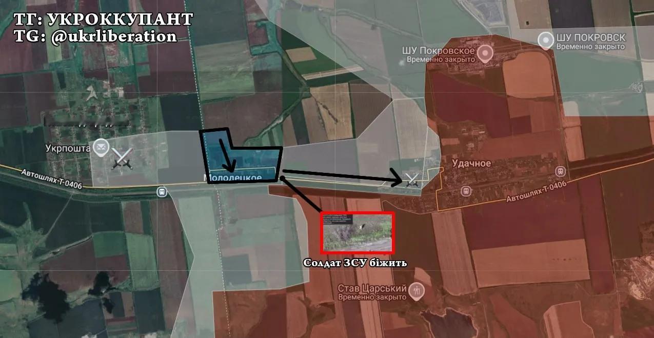 🚫俄方消息称,乌军仍在莫洛迪茨克东部集结兵力,并向乌达奇内(Удачне)方向发起突击,当地战斗持续。作为佐证,其中一方发布了视频,显示乌军士兵(疑似第425独立空降突击旅“斯凯利亚”)在乌达奇内突击失利后,撤回莫洛迪茨克己方阵地。有视频证据,因此可判断乌军控制莫洛迪茨克。