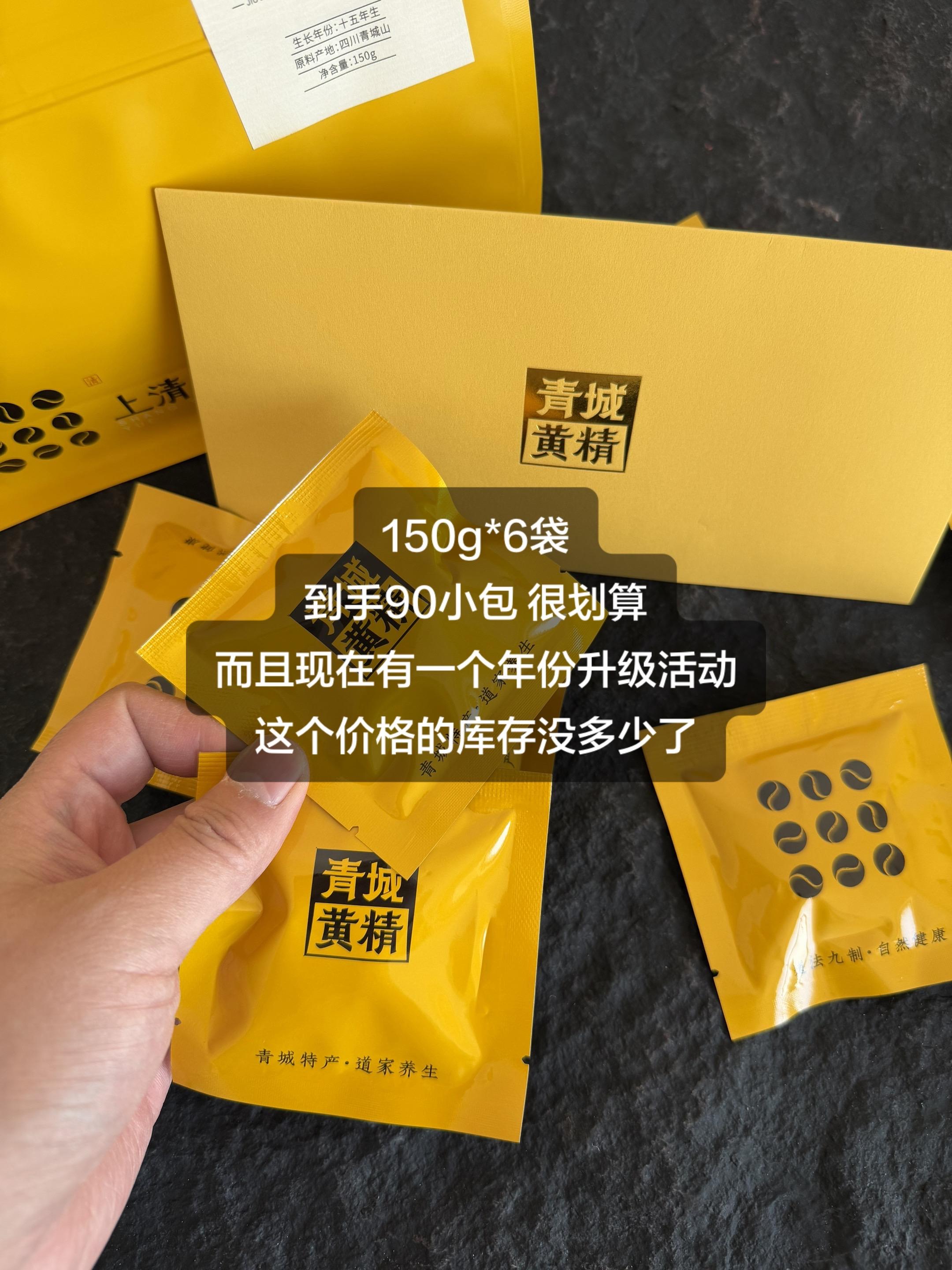 青城山九蒸九晒黄精活动来了。现在150g*6袋,到手90小包,很划算