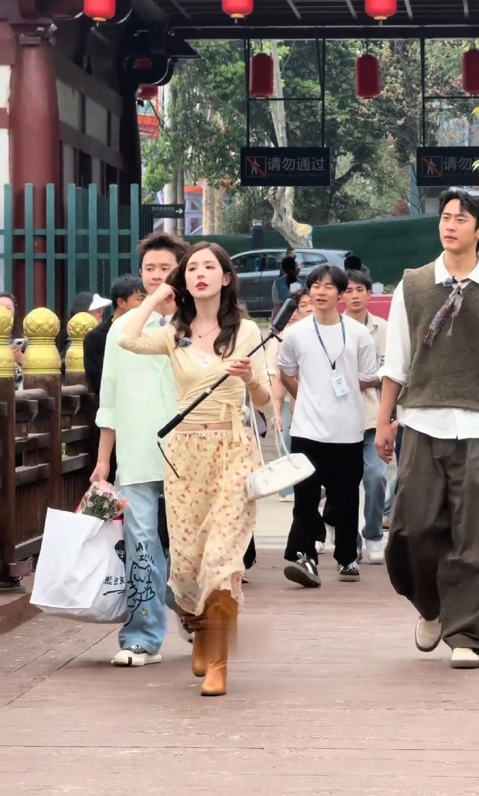 最理解不了哈妮克孜这种穿搭,白瞎了好身材,衣服明明那么轻薄飘逸,脚上却配了一双厚重笨拙的堆堆中筒靴,天呐,这到底是怎么想的?一走路,仙气飘飘的纱裙里明显能看到鼓鼓囊囊的筒靴,看着特别臃肿不利索。哪怕穿一双普普通通的板鞋都比穿这个靴子好,这谁给搭的衣服,简直是天才……