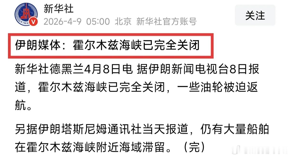 伊朗媒体报道:霍尔木兹海峡,再次完全关闭,通行的油轮被迫掉头返回;以后要过,也必须获得伊朗海军的批准,才能通行。