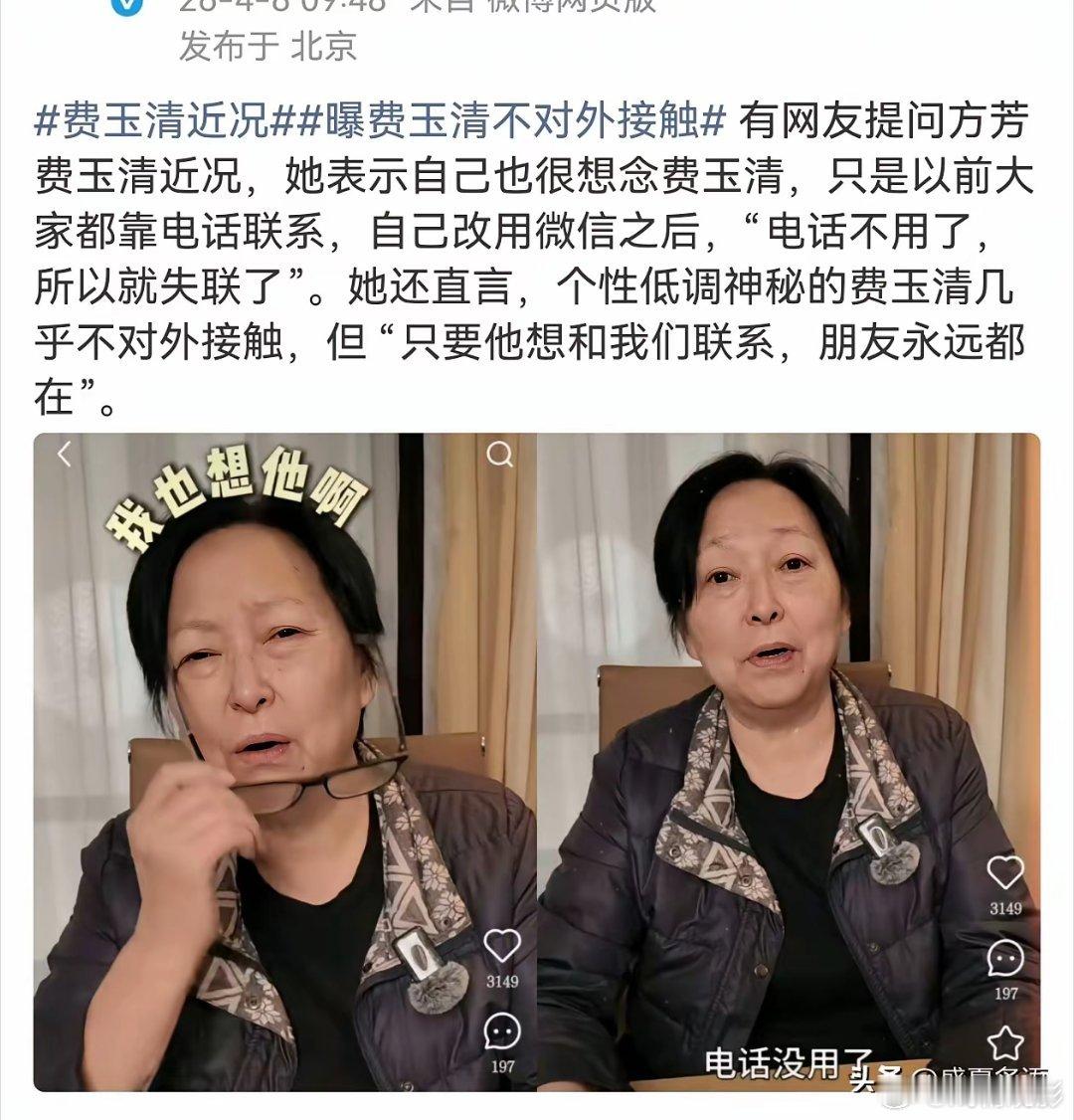 费玉清,近况曝光!4月8日一大早,已经退圈6年多费玉清,突然冲上了热搜,好友一句话让人遗憾:“改用微信后,电话不用了,(他)就失联了”。好友方芳直言小哥个性低调神秘,几乎不对外接触,但也暖心补了一句:“只要他想联系,朋友永远都在”。短短几句,道尽这位乐坛传奇退圈6年的真实状态。费玉清2019年台北封麦后,彻底告别娱乐圈。解散团队、退还定金、换掉旧手机号,从金嗓歌王变回普通老人。如今70岁的他独居台北淡水母亲留下的老宅,养花遛狗、逛市场砍价,生活极简又规律。一生未婚无子女,却有知己江蕙相伴,不被世俗定义,只守着清简岁月。从舞台上西装革履、一唱倾城,到归隐后布衣蔬食、不问世事,费玉清用半生证明:真正的通透,是巅峰时敢全身而退,归隐后能安于平淡。不被名利捆绑,不被社交绑架,按自己的心意活,才是最高级的自由。失联是选择,不是孤独;沉默是告别,也是圆满,没有对错,一切随心就好。