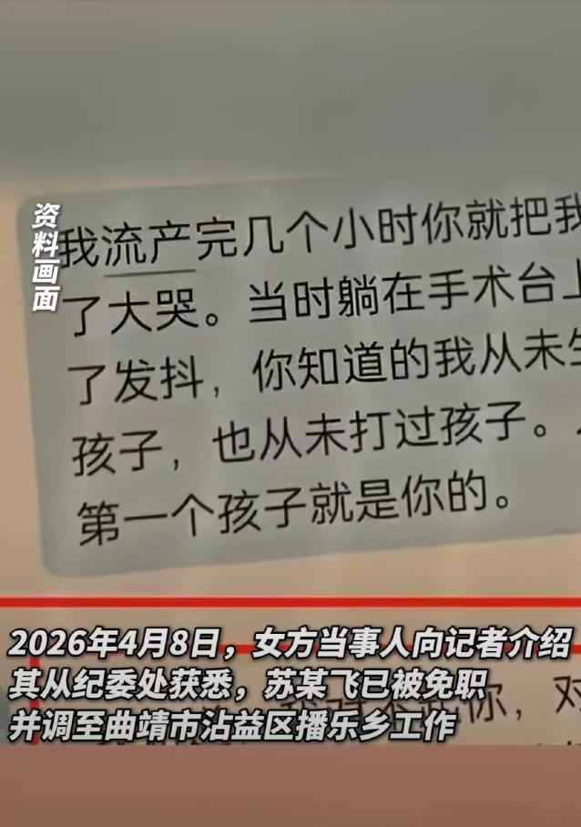 参考信息:“副县长苏某飞被举报出轨致孕”最新进展:已免职降级调往乡镇,女方发声:要求他当面道歉 2026-04-0822:00·大河报