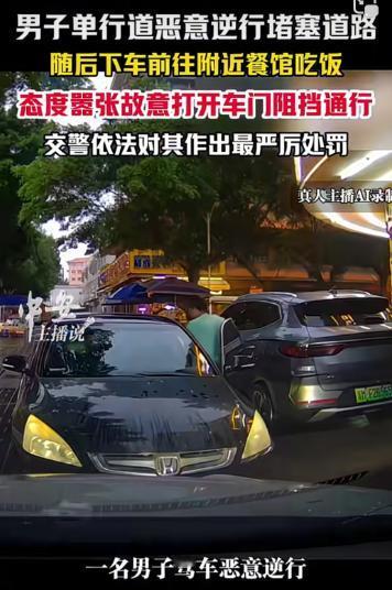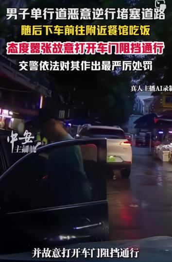 离谱!梅州男子逆行堵路只为吃饭,嚣张挑衅交警,顶格处罚大快人心!