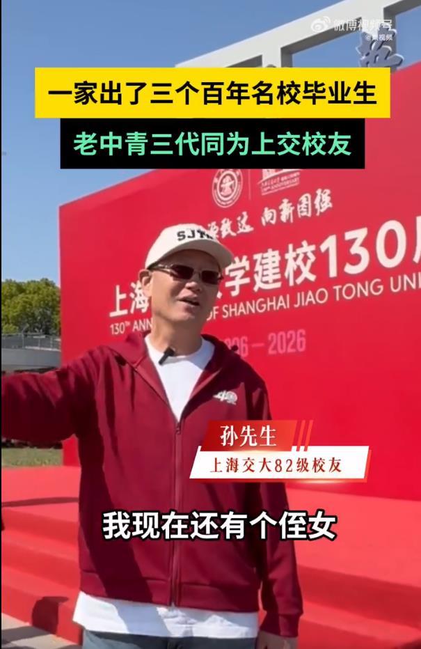 一家三代毕业于同所百年名校一家三代扎根同一所名校,这哪儿是校友,分明是“钉子户”。从爷爷辈卷到侄女辈,校庆直接开成家庭聚会。交大欠他们一个“终身成就席”:别人毕业离校,他们是户口本就没迁出来过。一家老中青三代是上海交大校友