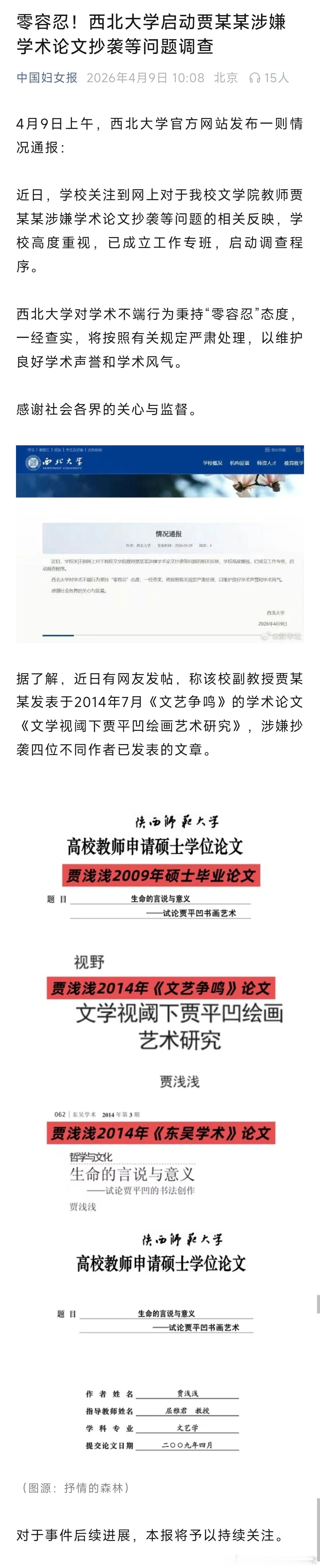 贾浅浅的论文是如何一路通关的西北大学就贾某某涉嫌学术论文抄袭等问题启动调查程序!