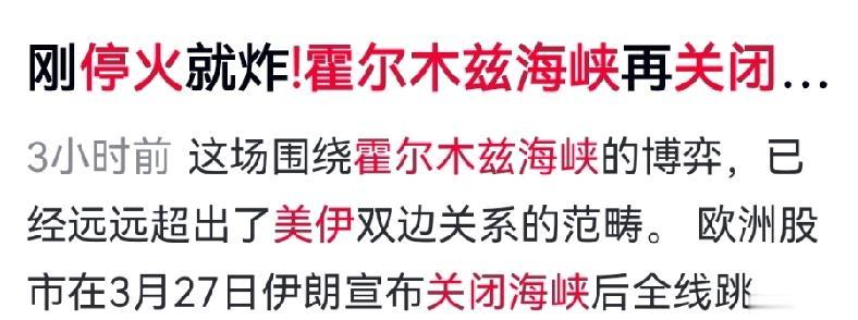 停火沦为废纸!霍尔木兹海峡全关,中东和平彻底陷入僵局