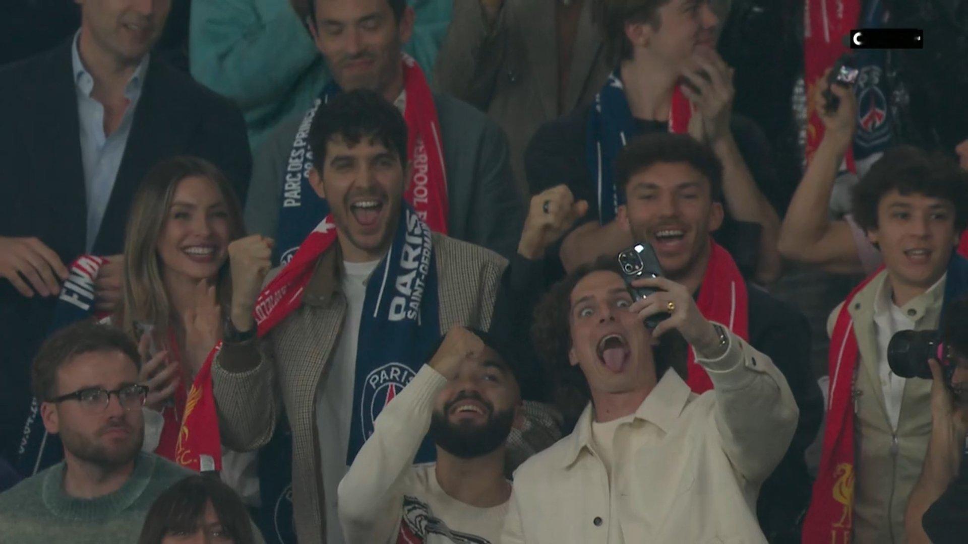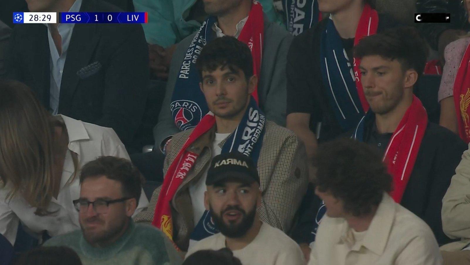 嗯👀…奥康和加斯利坐在一起观看了欧冠比赛(巴黎圣日耳曼VS利物浦的),同时哈贾尔也在现场,坐在他们旁边F1赛车欧冠