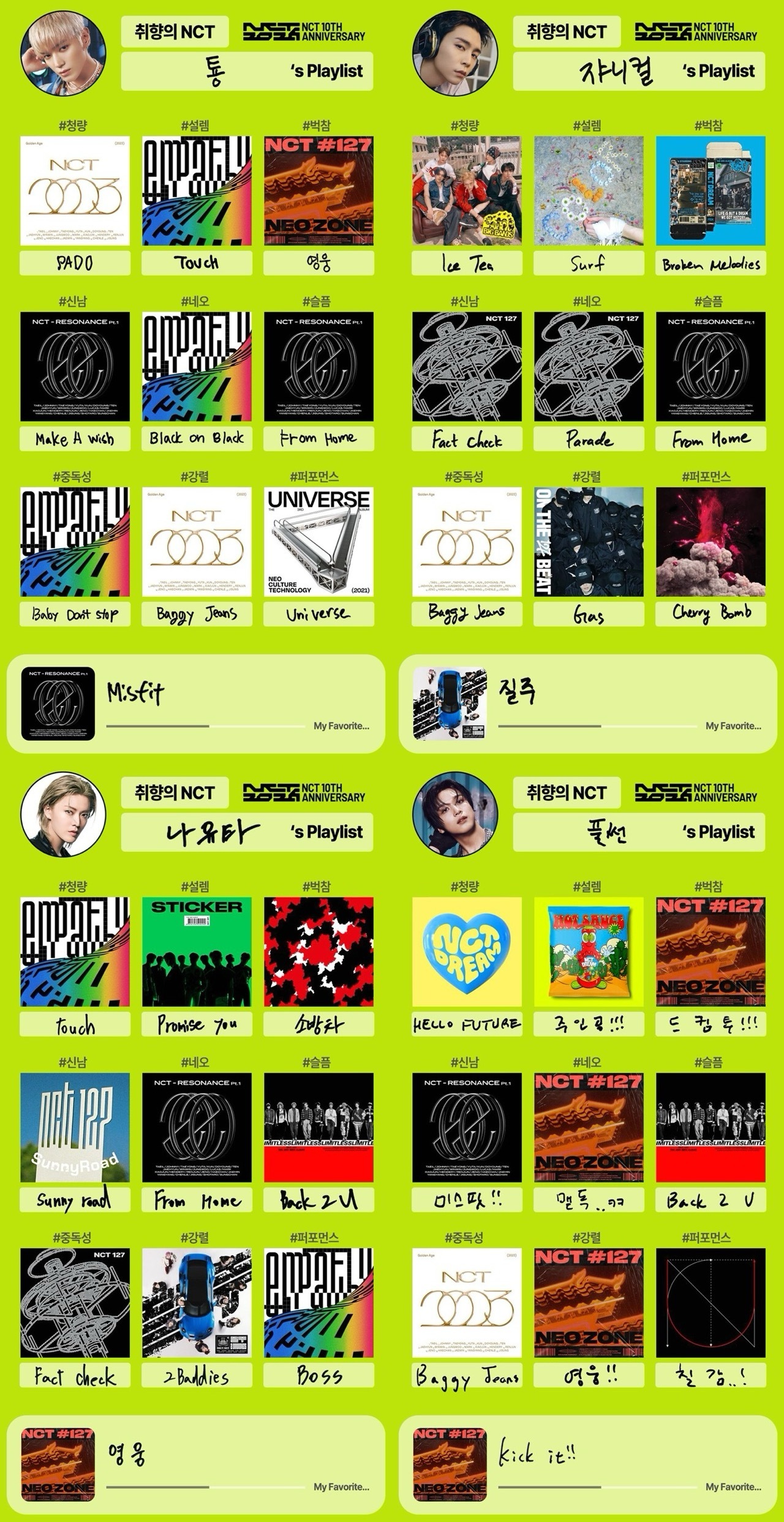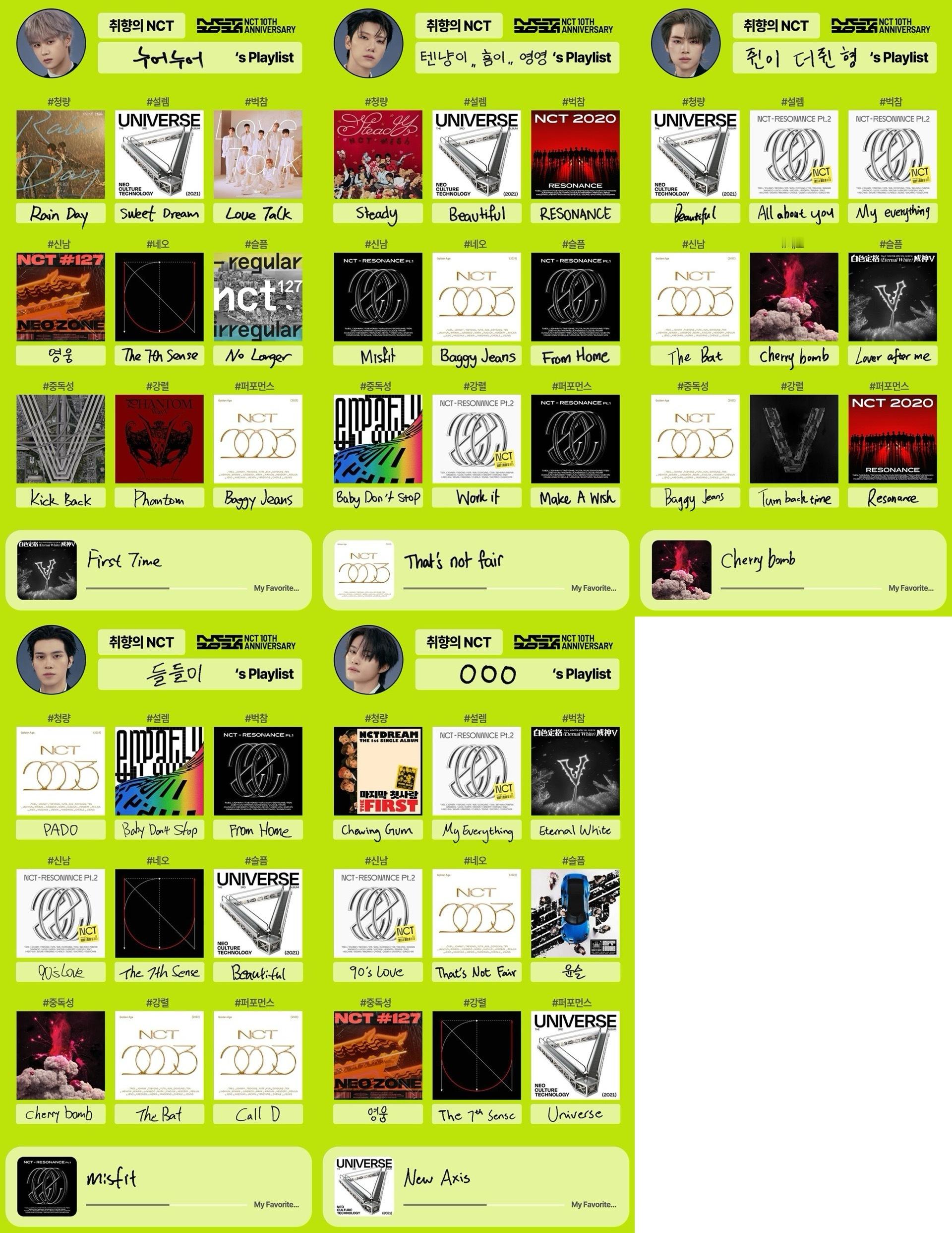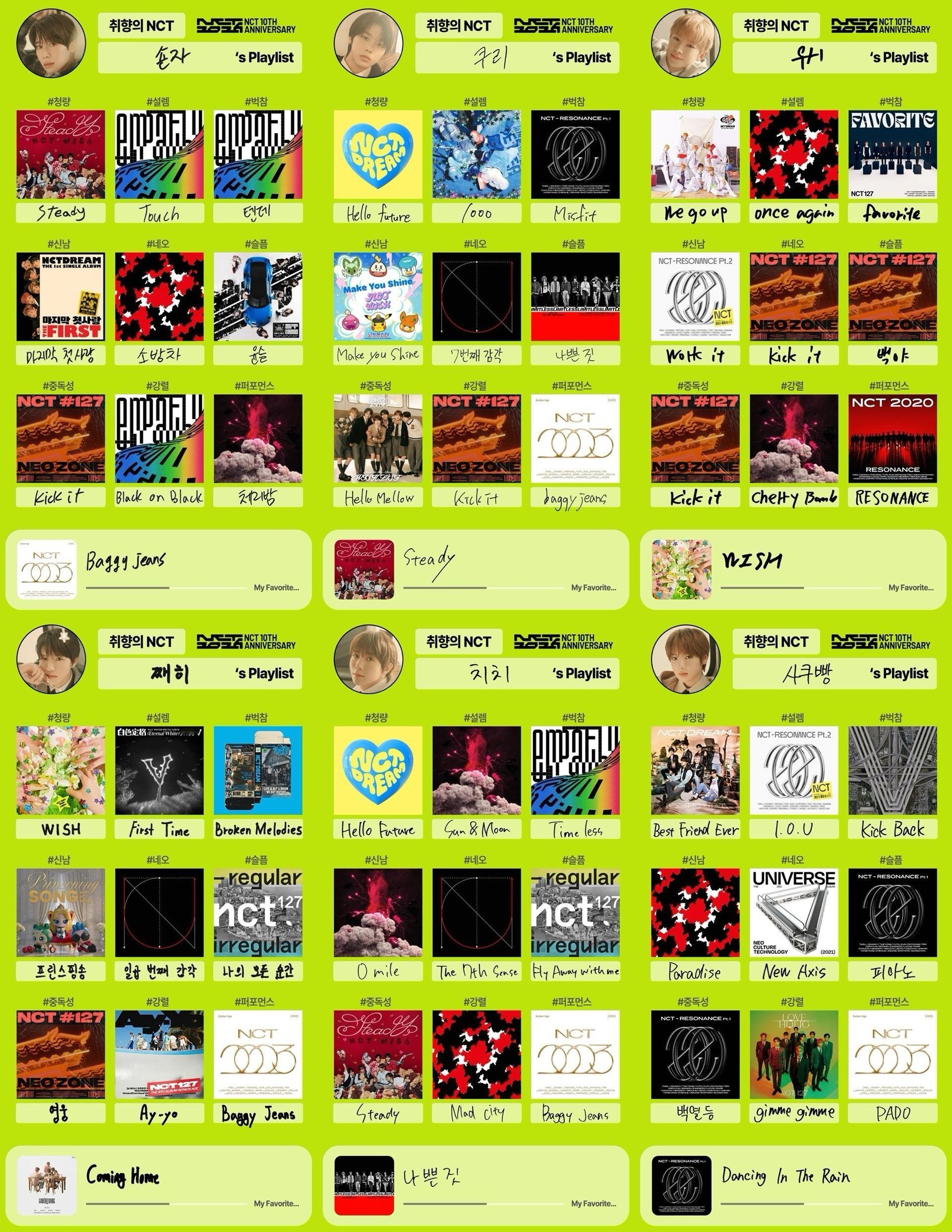 NCT127、NCT DREAM、WAY V、NCT WISHnct十周年歌单取向nct歌单全员取向